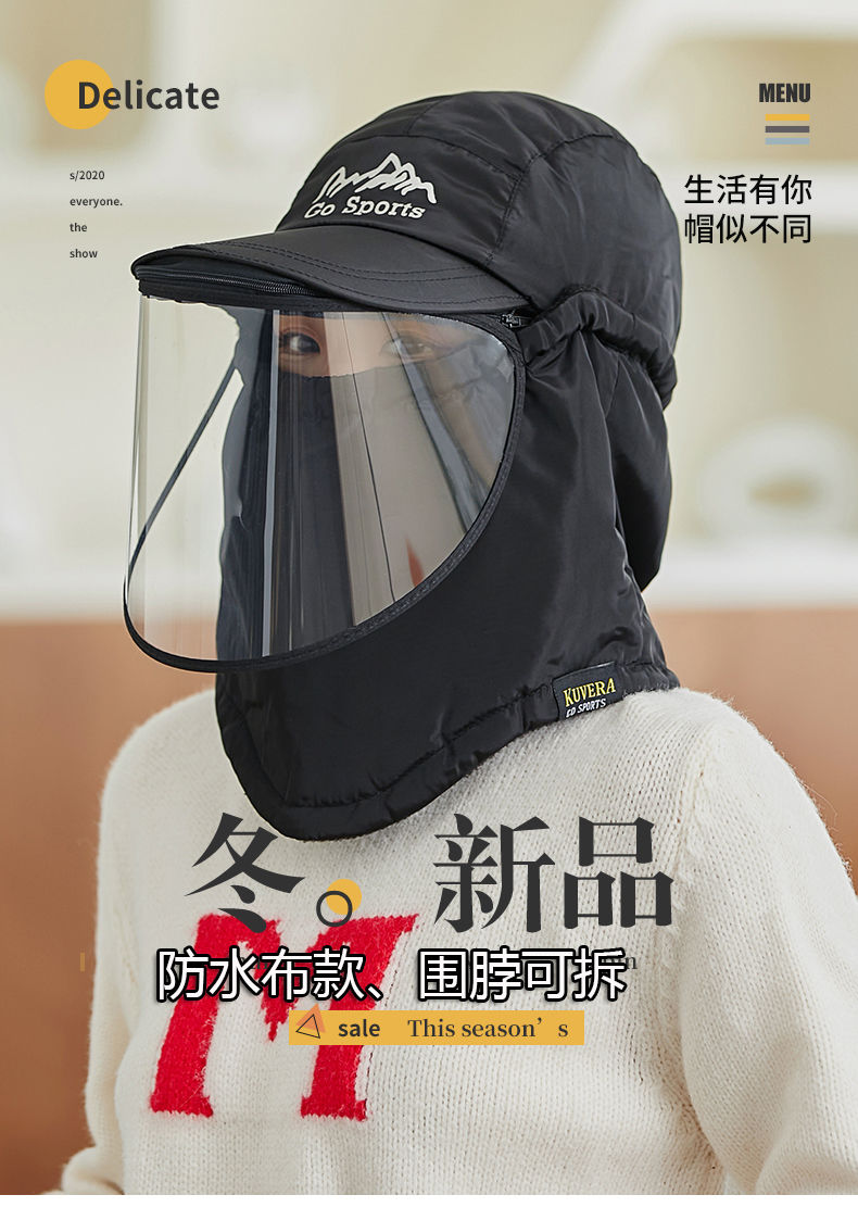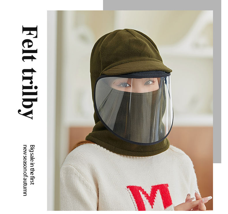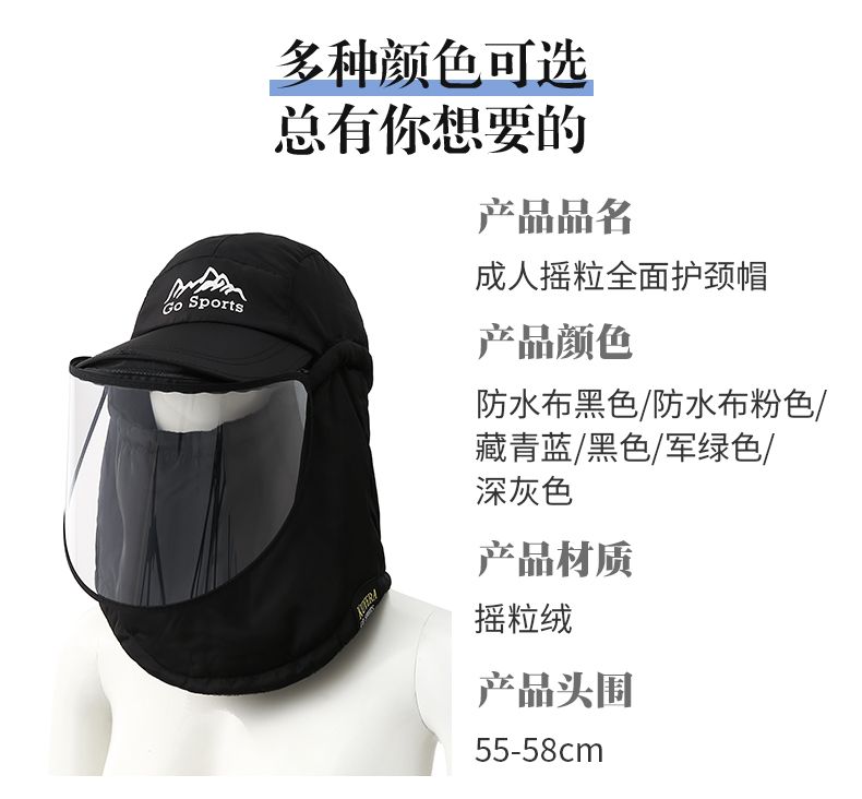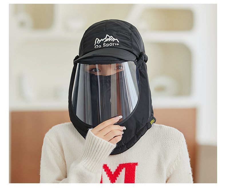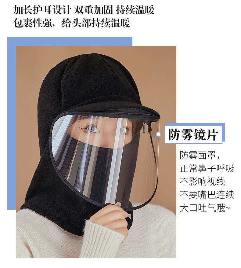 【防飞沫面罩帽】秋冬女保暖帽骑电瓶车防风帽子 男户外加绒护耳防寒帽