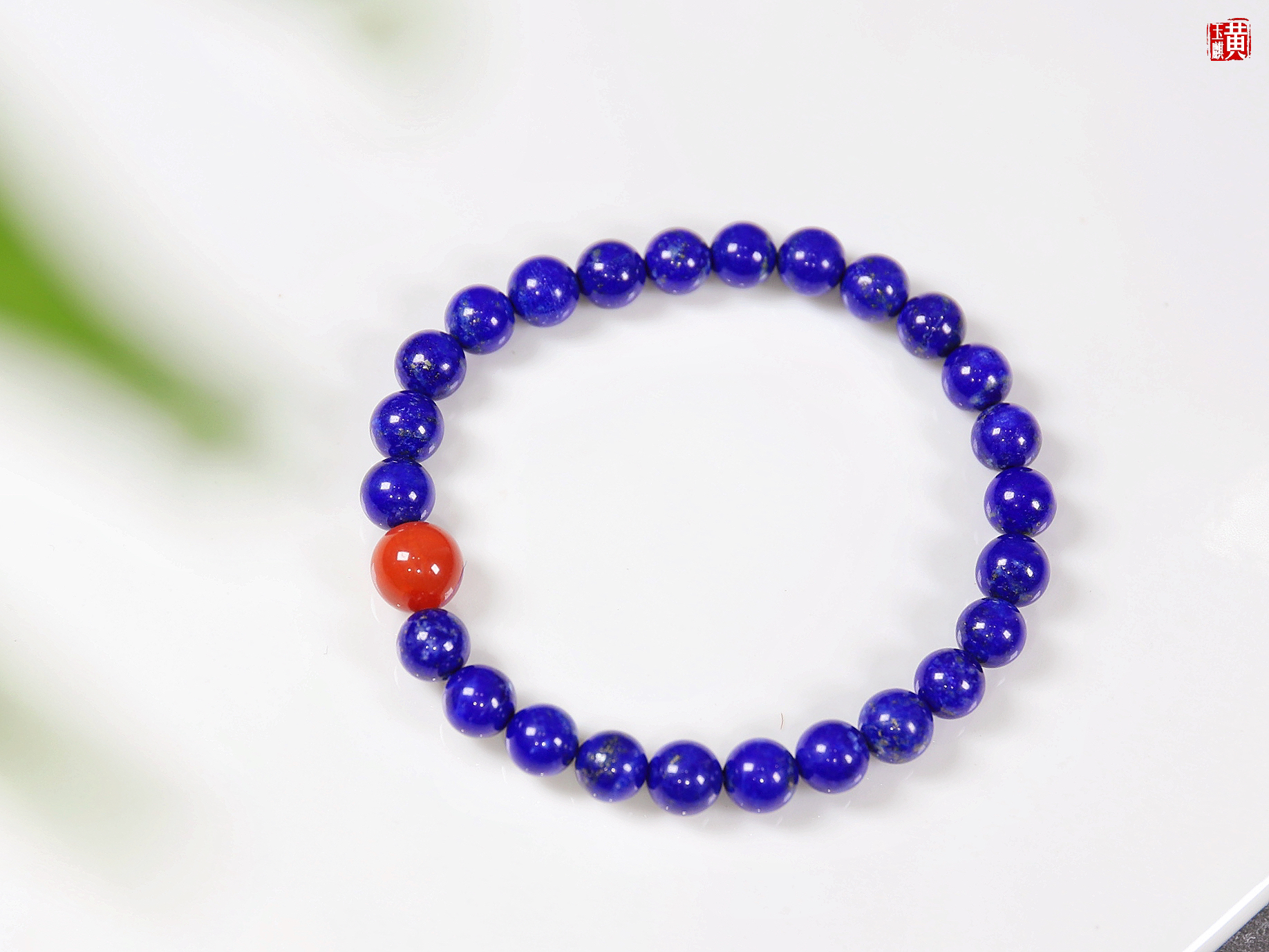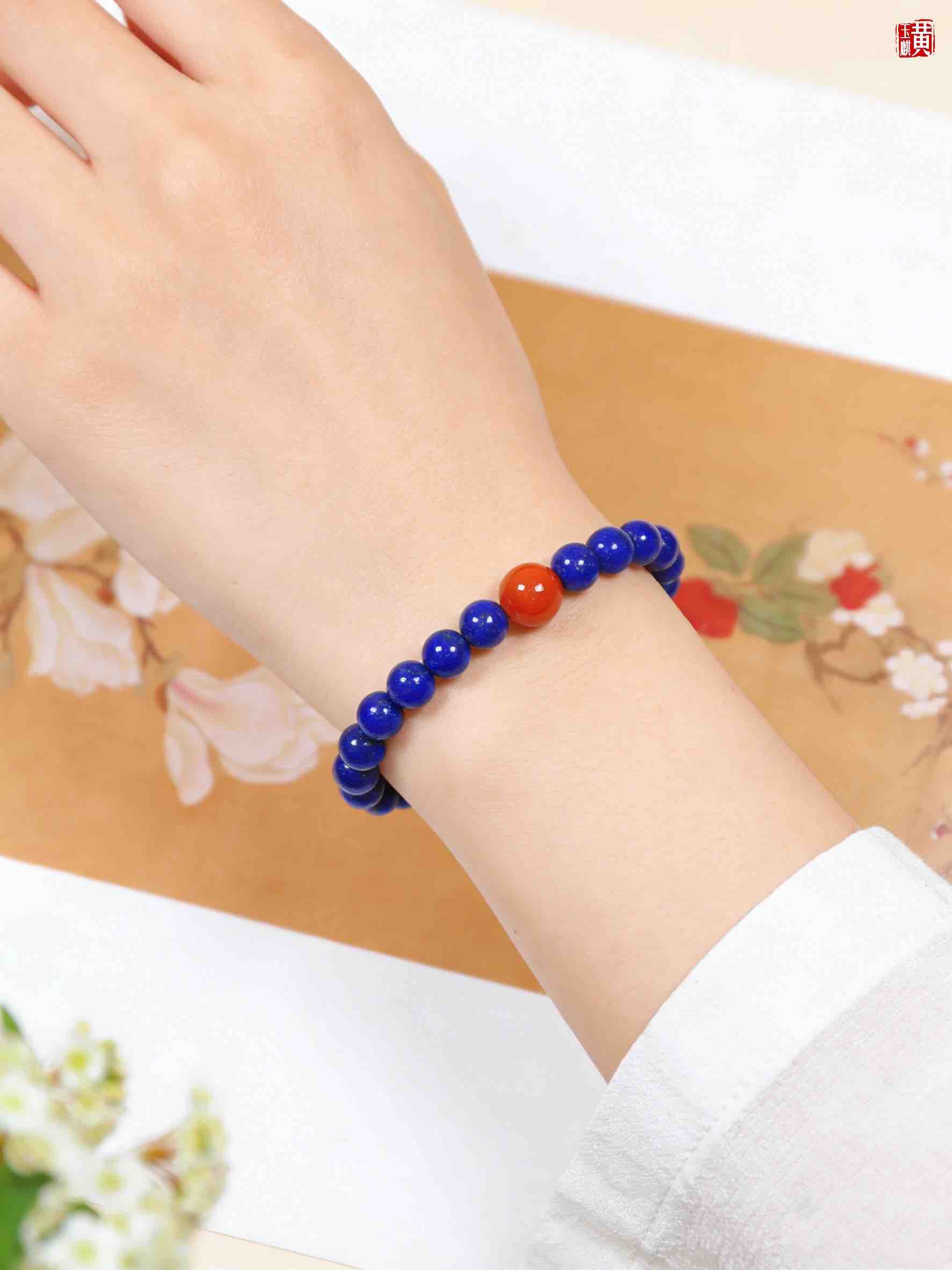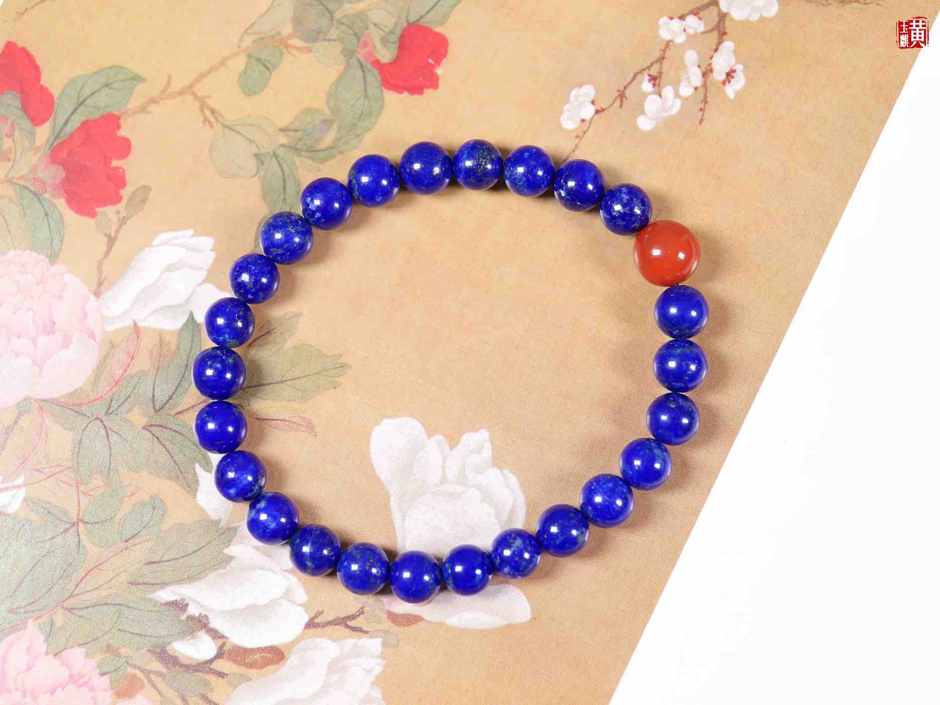 【鸿运当头】青金石手串,点缀一颗南红玛瑙