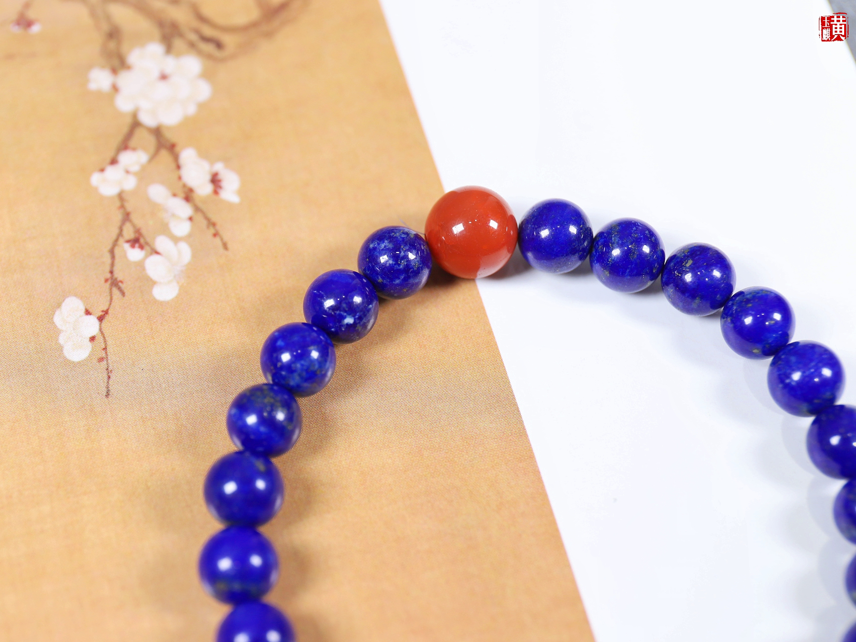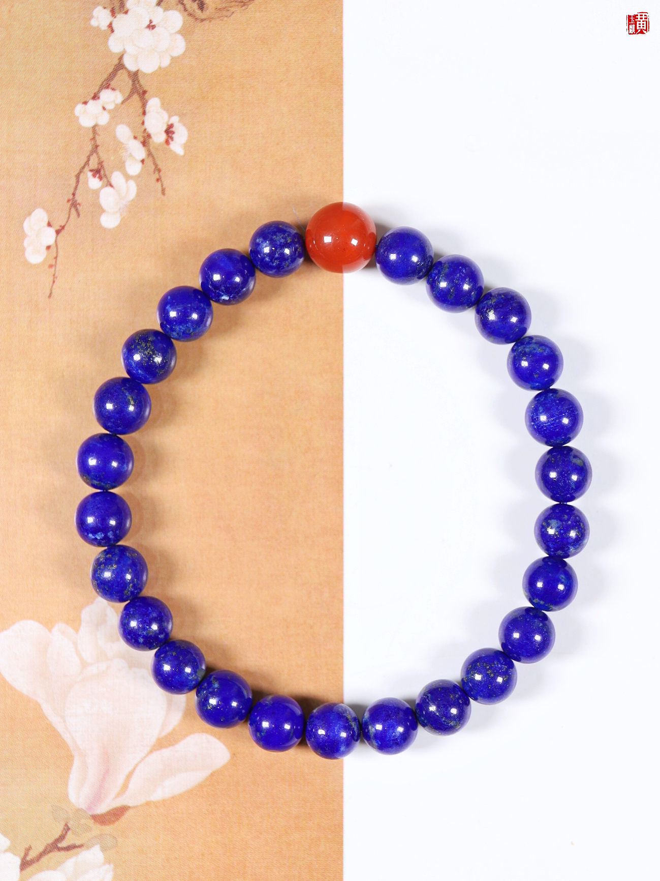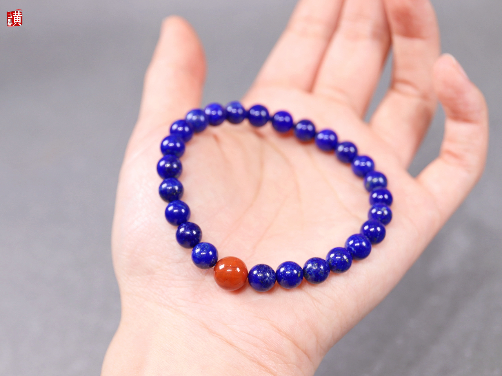 【鸿运当头】青金石手串,点缀一颗南红玛瑙