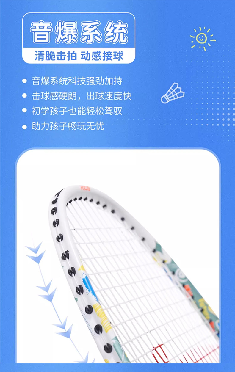 已穿线成品拍 李宁羽毛球拍入门训练儿童雷霆KIDS成品拍羽毛球拍