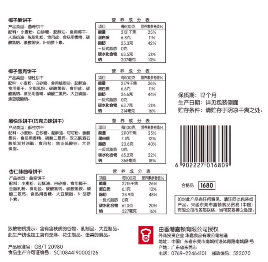 嘉顿 精选什锦饼干 380g/盒
