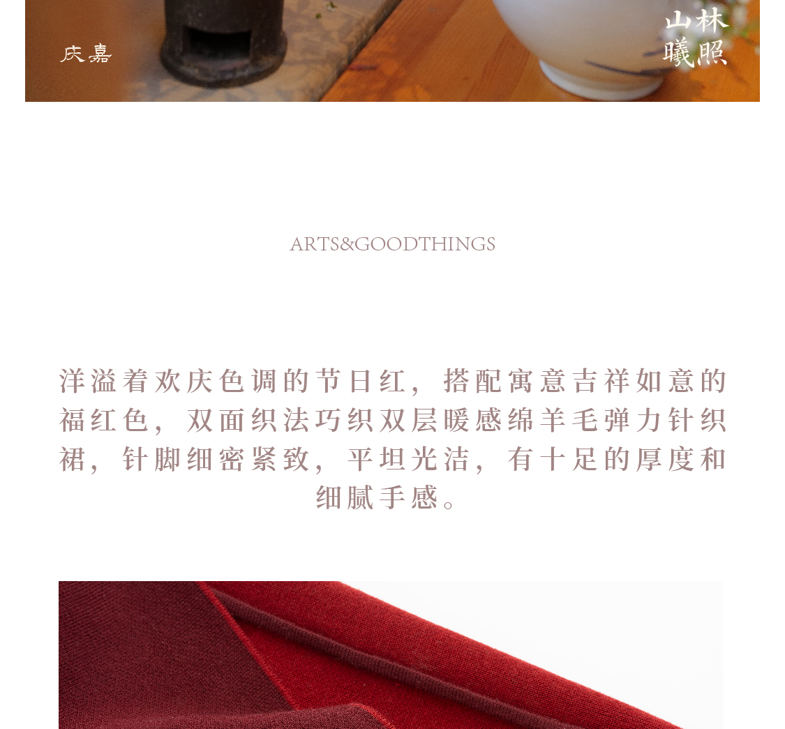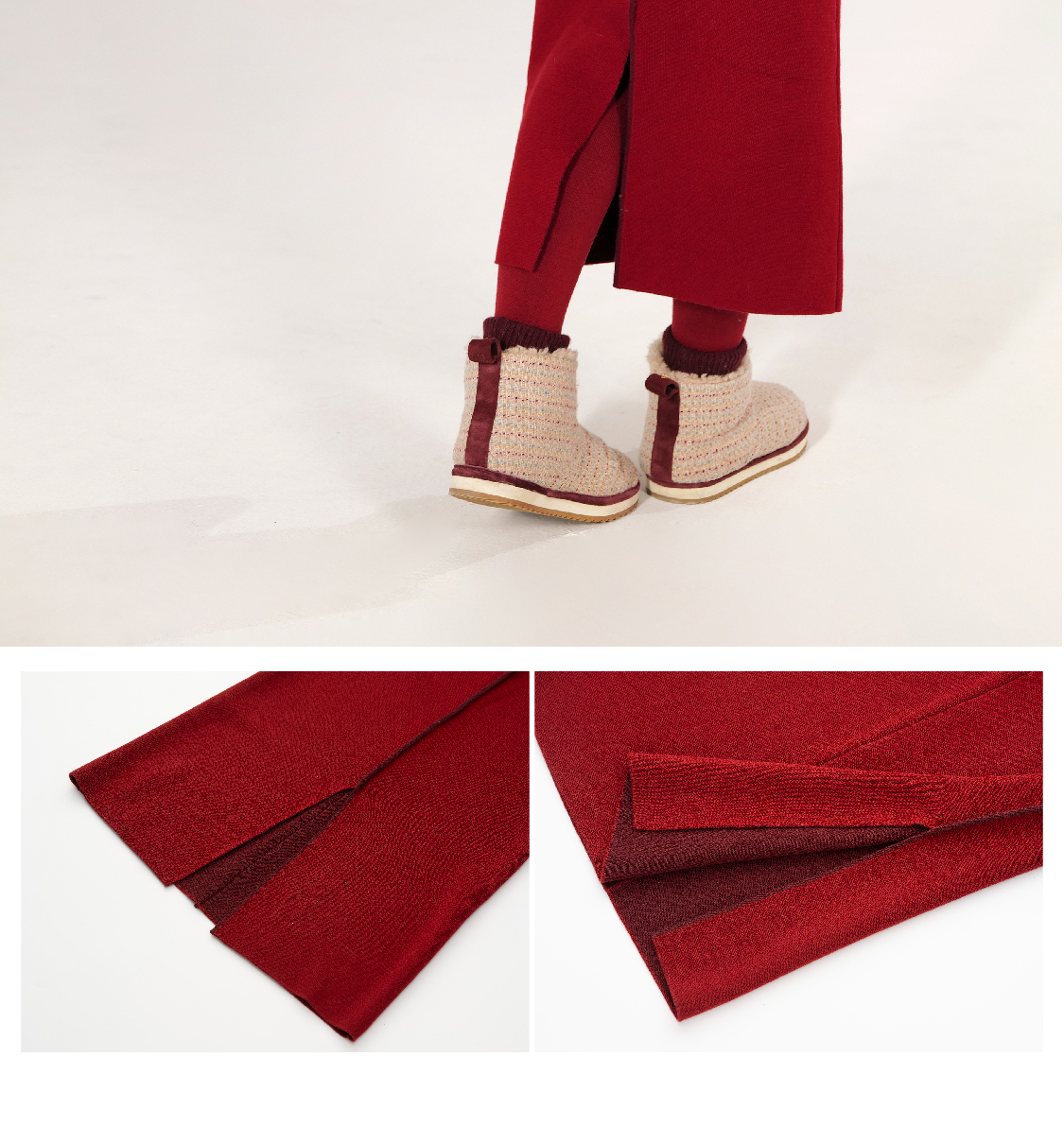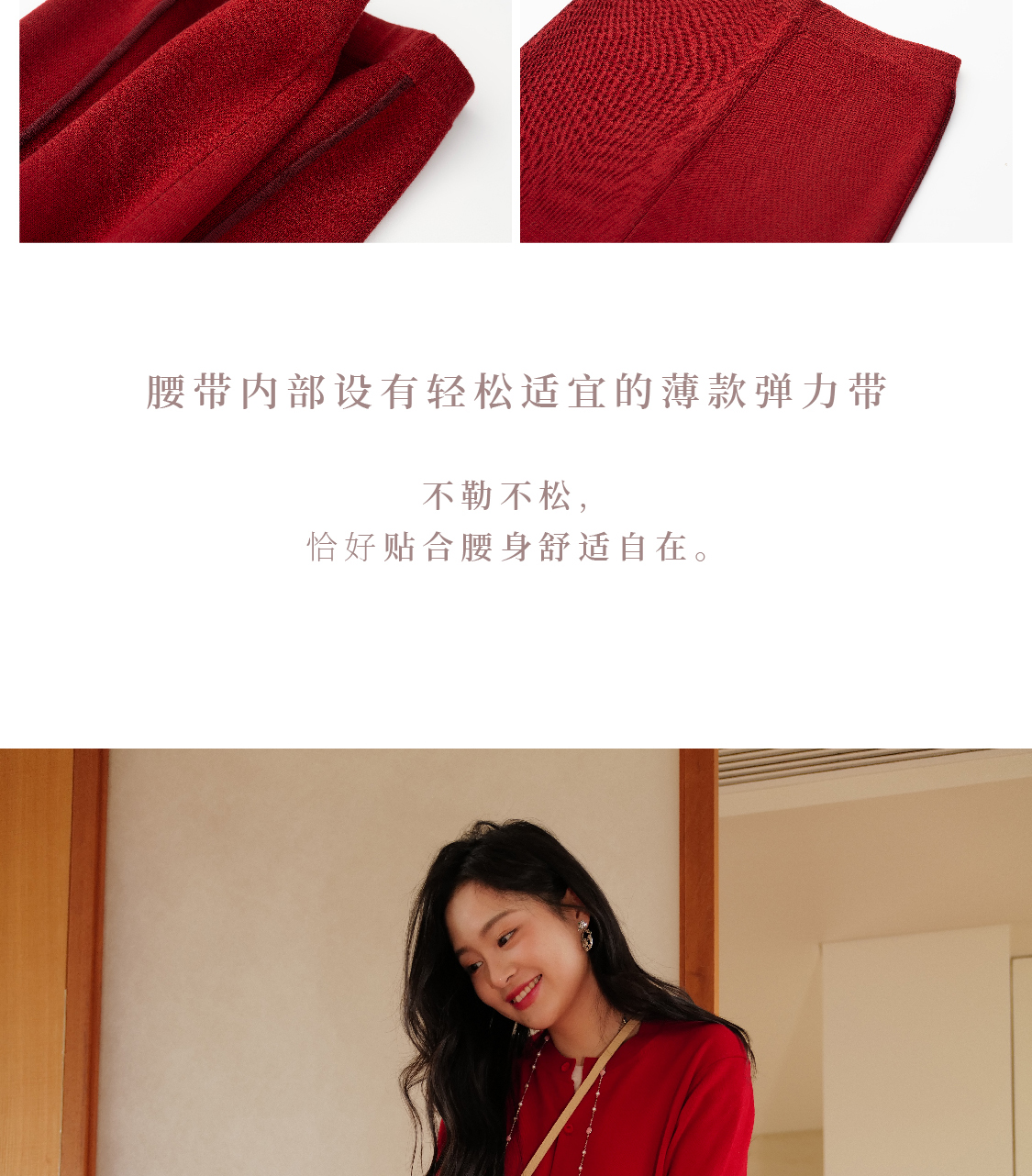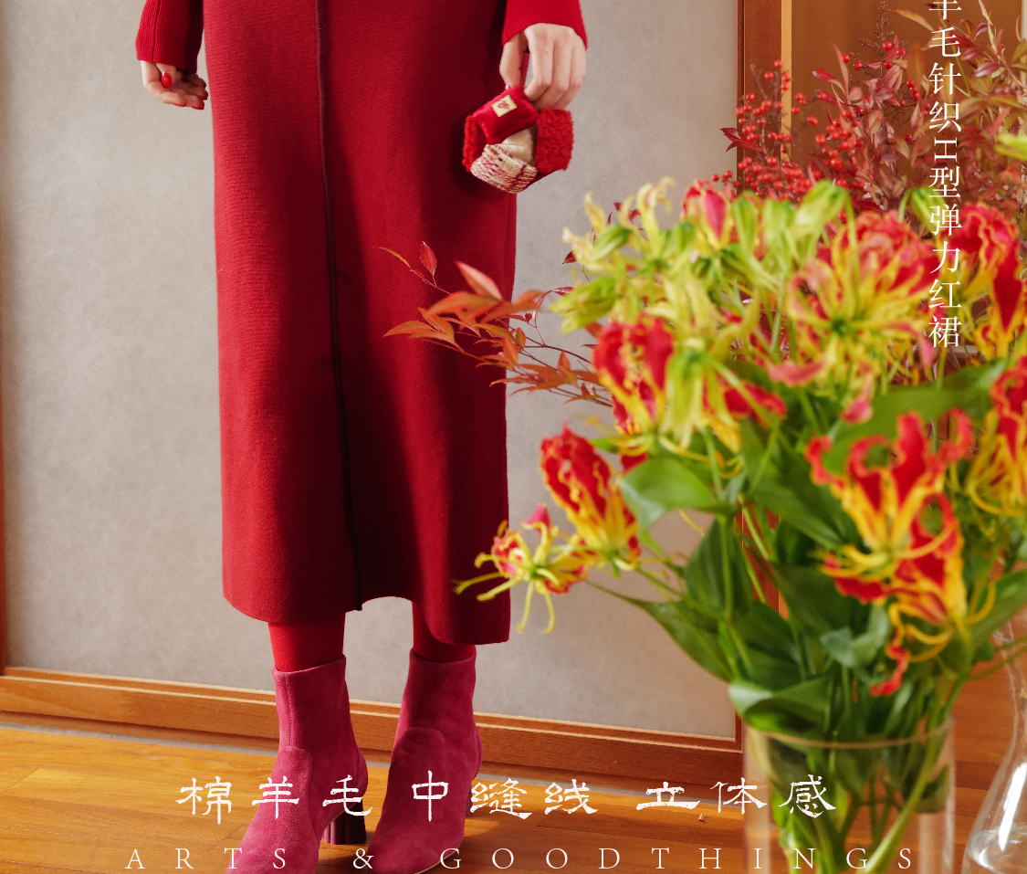 庆嘉 羊毛针织H型弹力红裙 山林曦照
