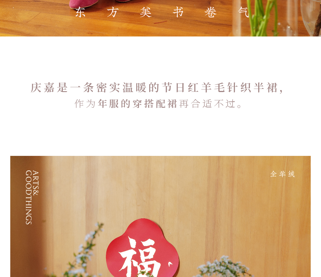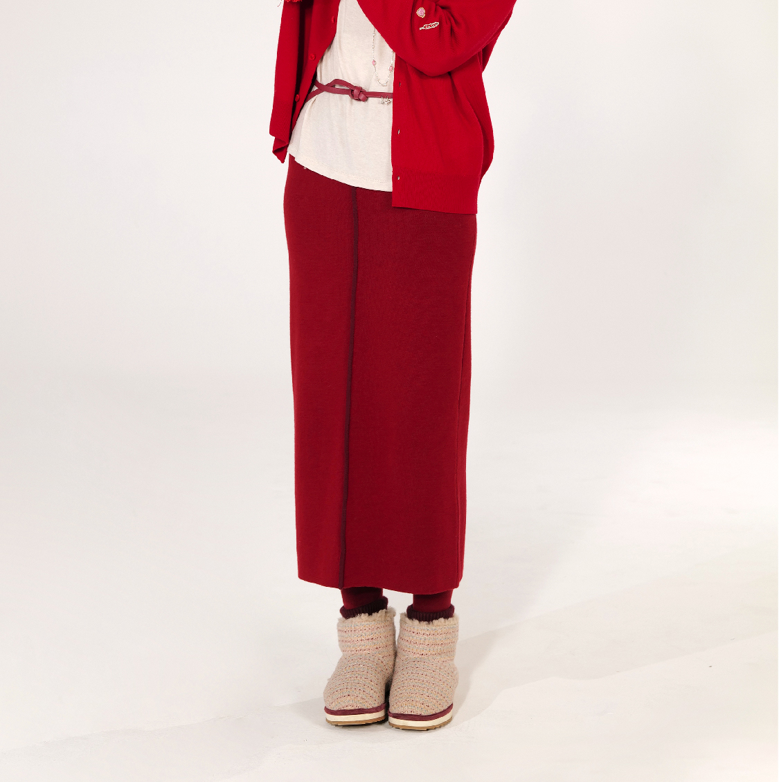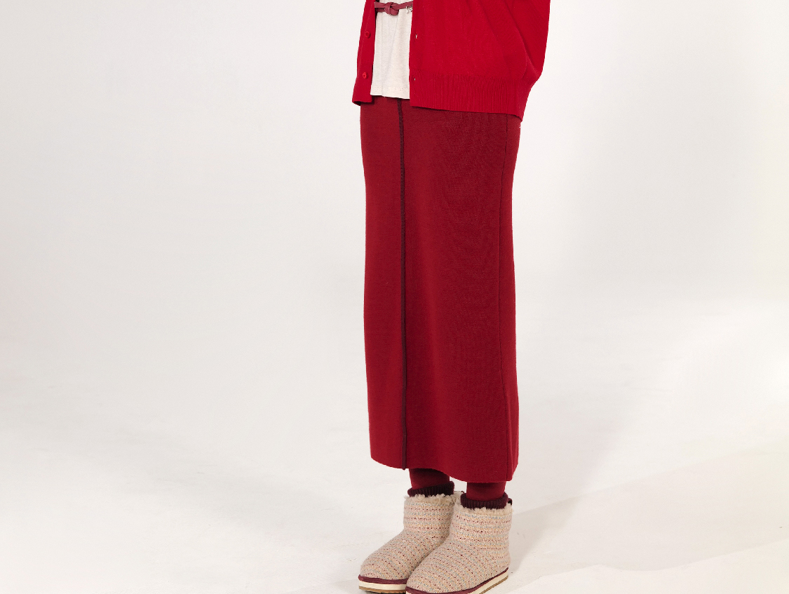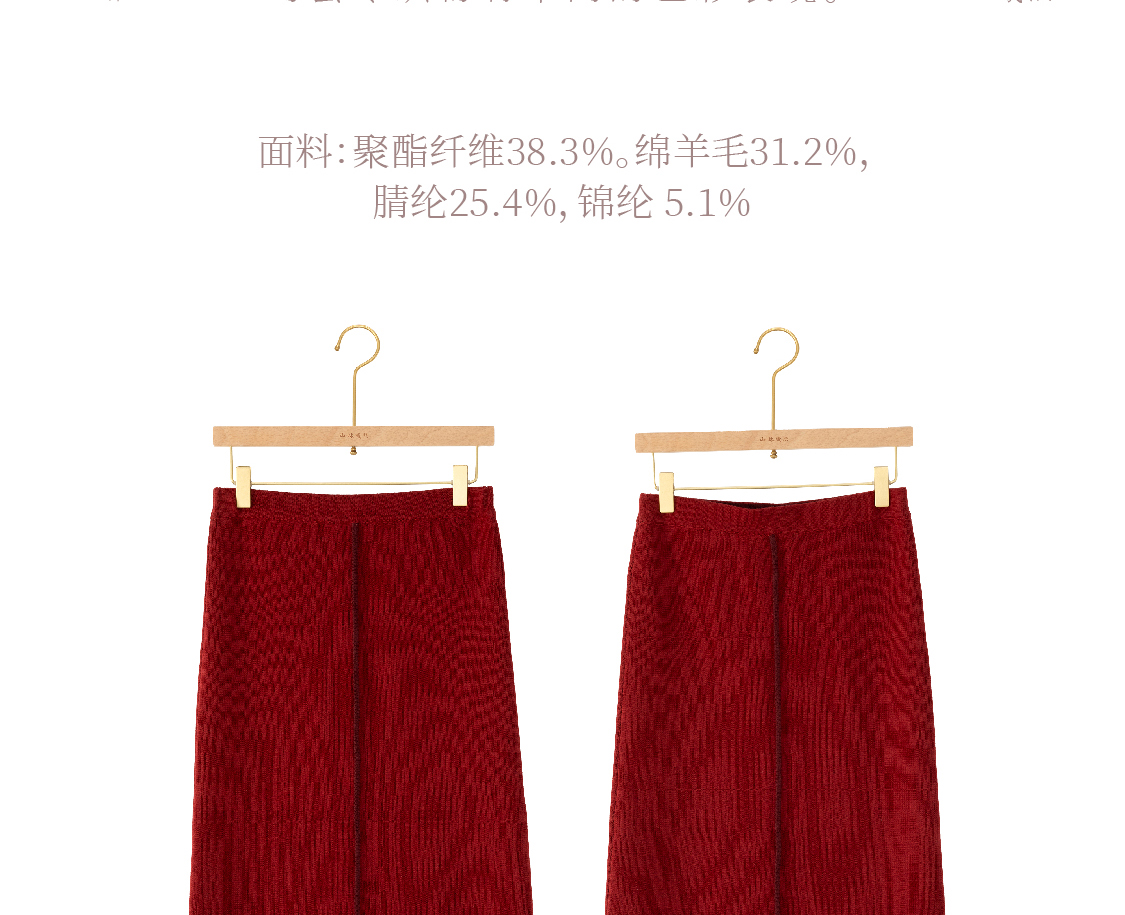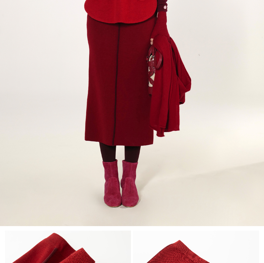 庆嘉 羊毛针织H型弹力红裙 山林曦照