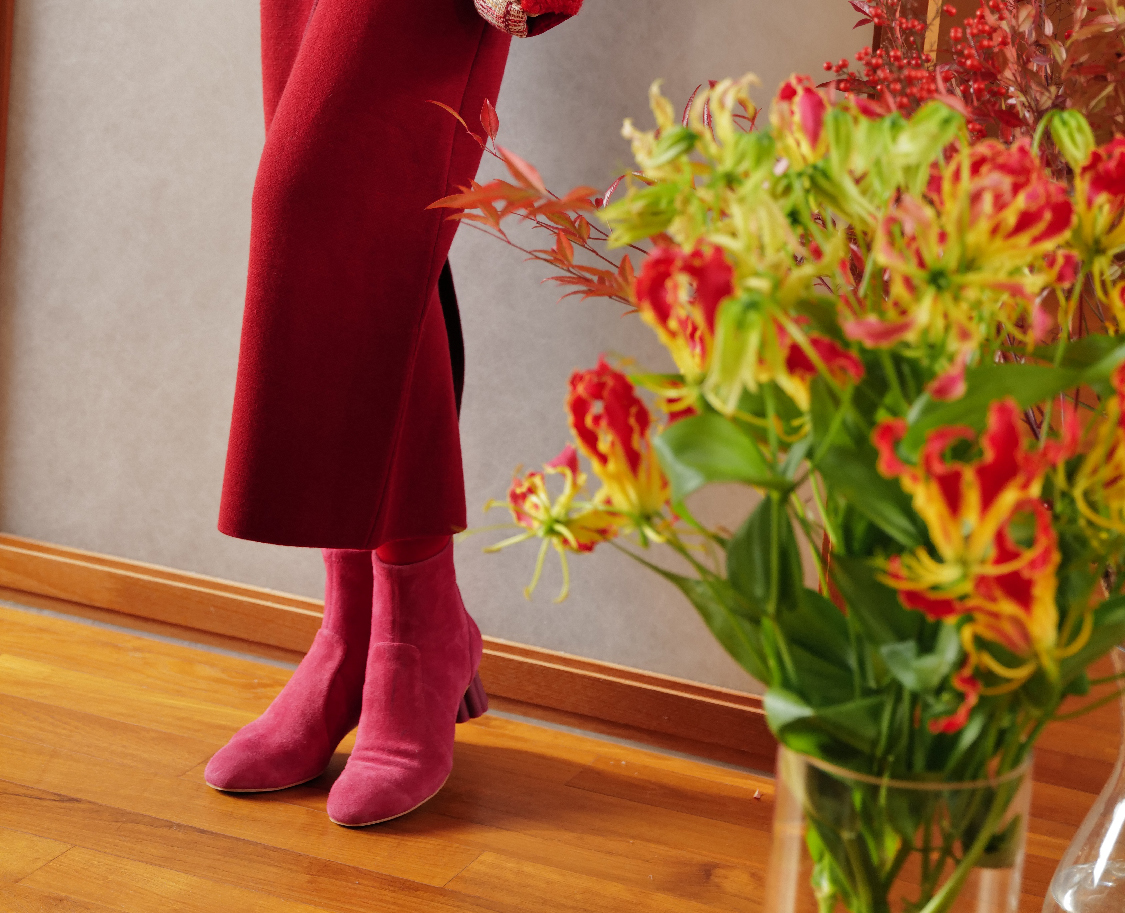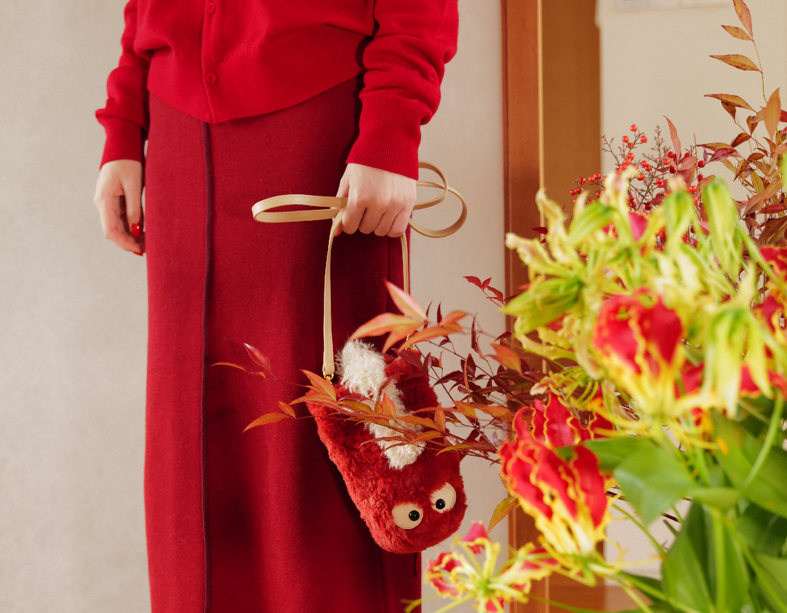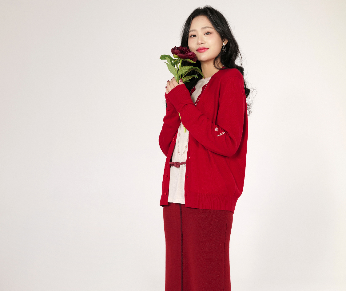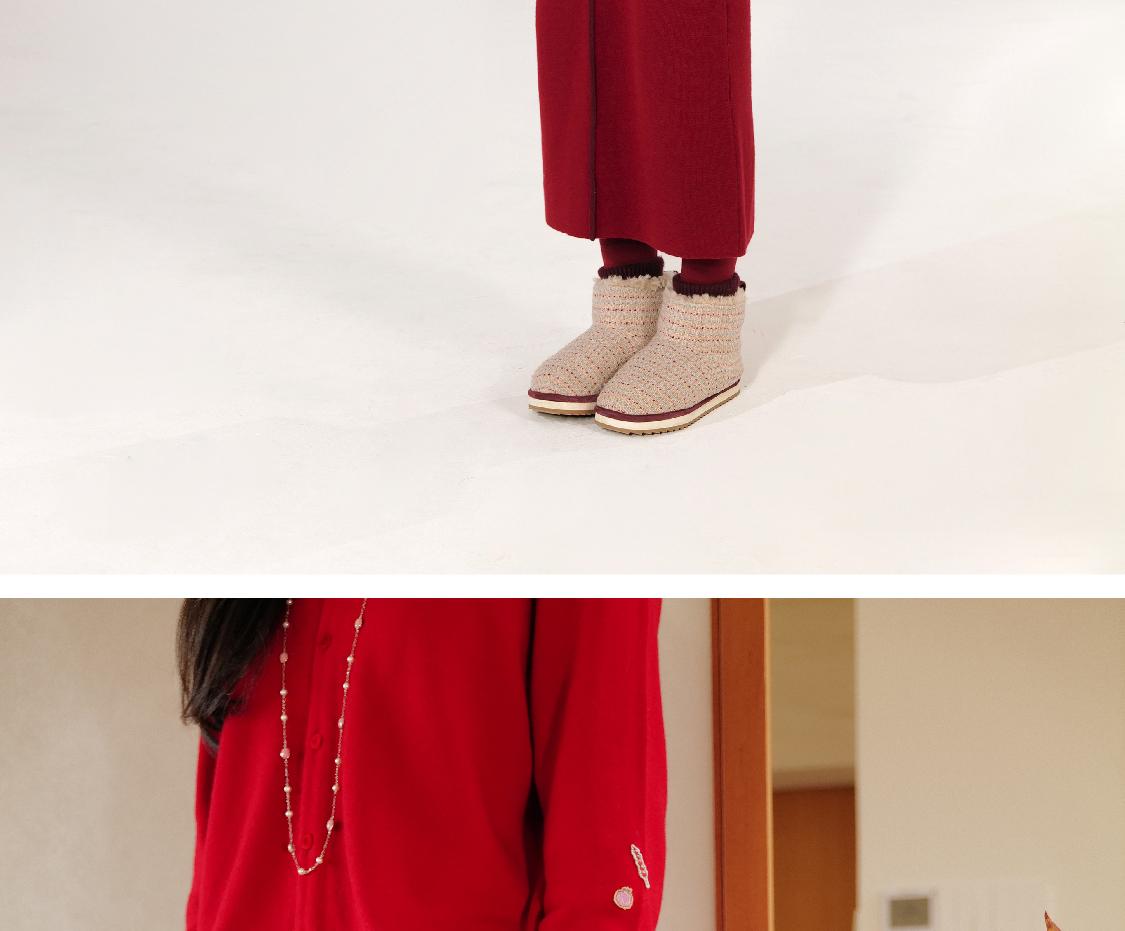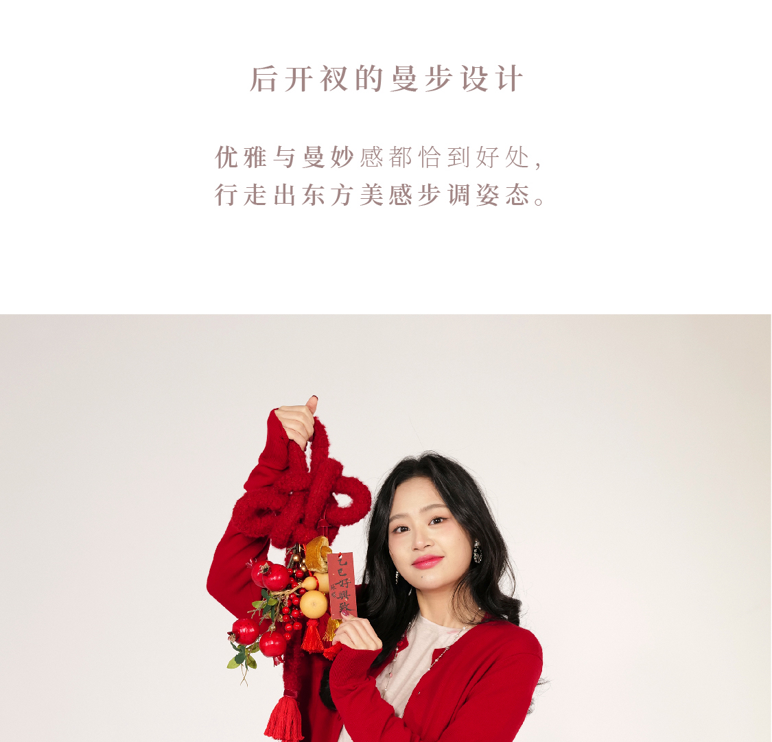 庆嘉 羊毛针织H型弹力红裙 山林曦照