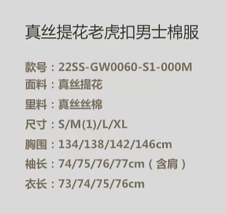 盛唐牡丹 |真丝提花老虎扣男士棉服