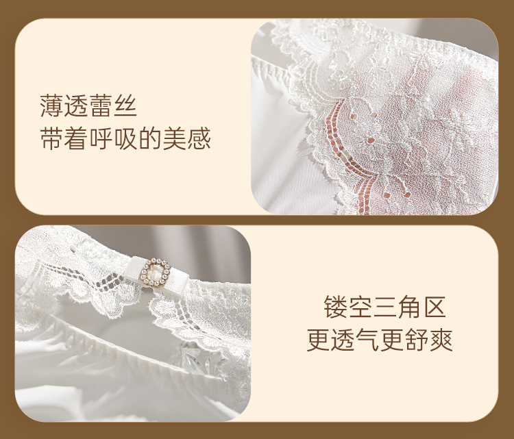 法式性感[珍珠中腰内裤]舒适透气蕾丝花边纯棉里裆三角裤