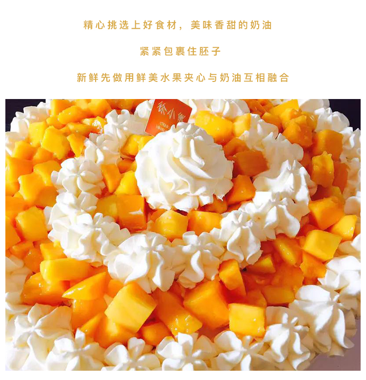 - 主理人毕业于法国蓝带东京校区——高级西点师认证 12年坚持研发高品质水果风味奶油蛋糕