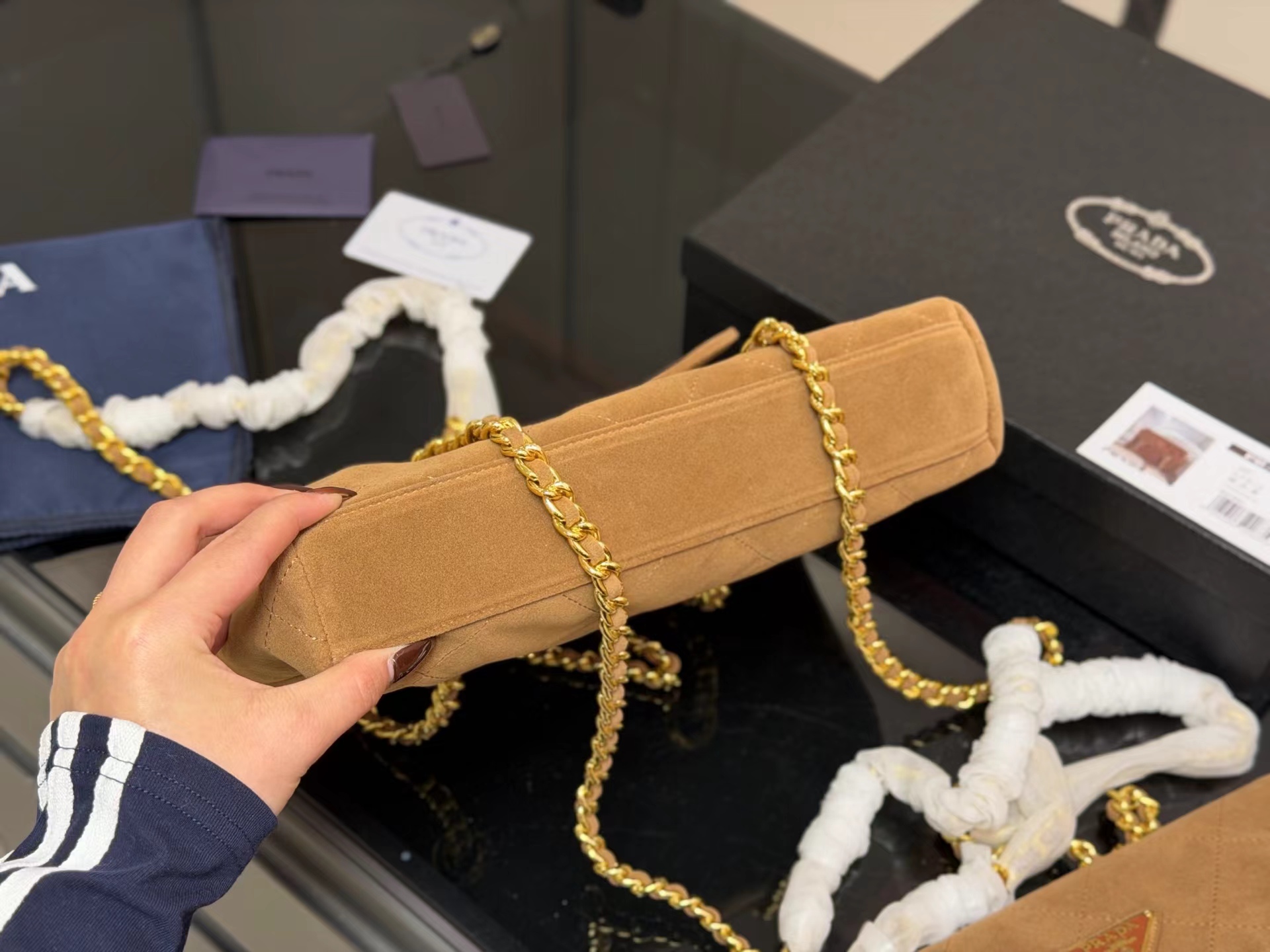 麂皮降落伞也不比尼龙的差吧,我感觉麂皮也有它自己的味道!降落伞系列经久不衰呀 这只颜色很特别 尺寸也是很可爱