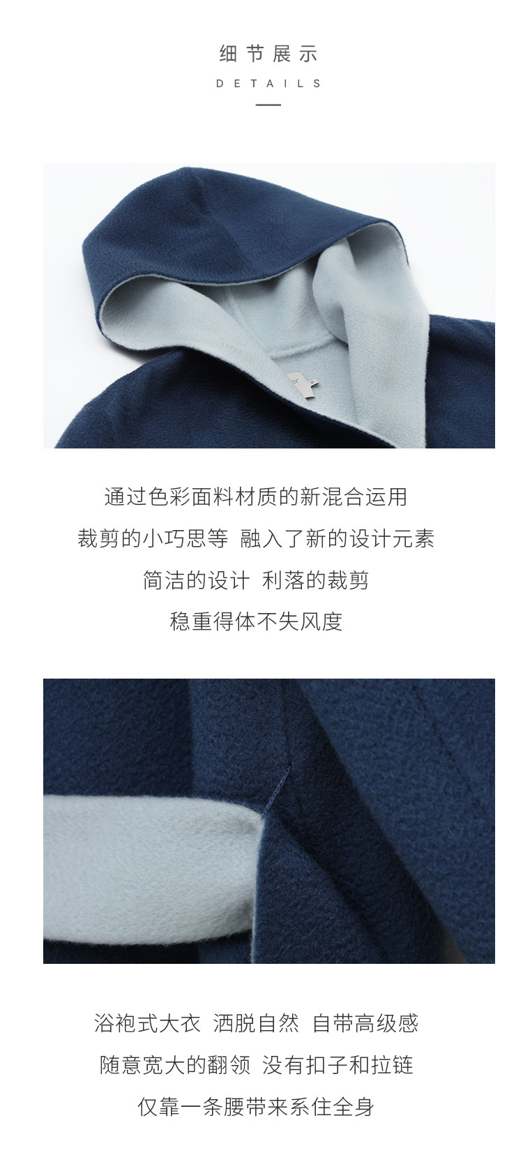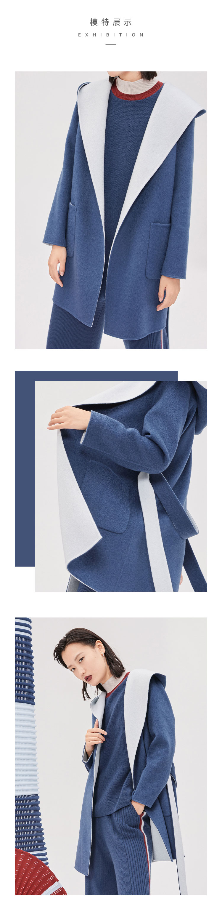 连帽中长款水波纹羊绒呢女大衣 SJF18W721B