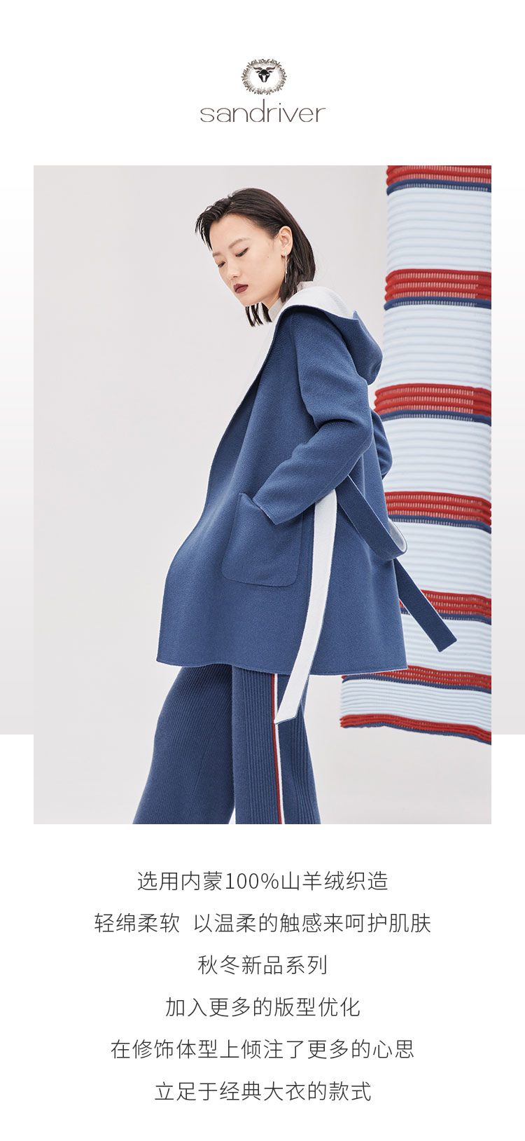 历年在巴黎时装周亮相,享誉世界的艺术羊绒品牌[Sandriver 沙涓]由羊绒布道者郭秀玲女士创立。阿拉善自有牧场纯种羔羊绒,日本国宝设计师小筱顺子,上海自有基地精工细作。承载羊绒情怀,坚持匠人品质。