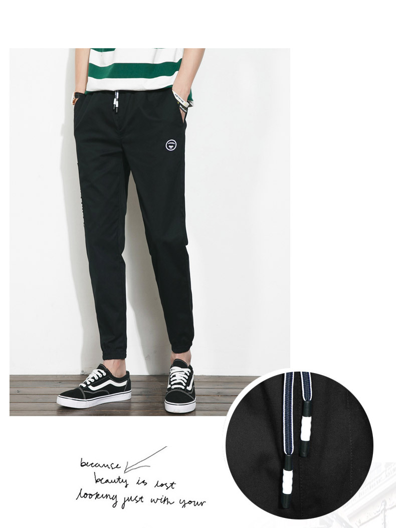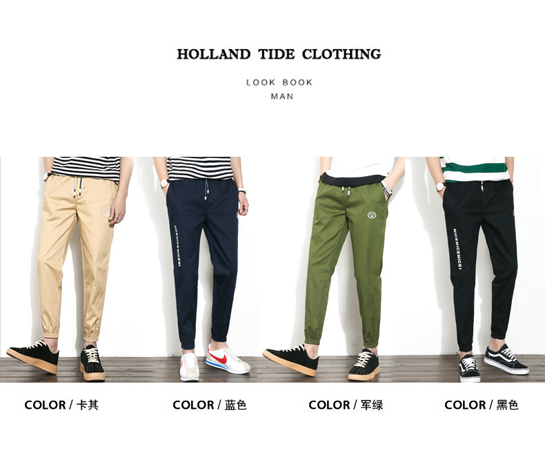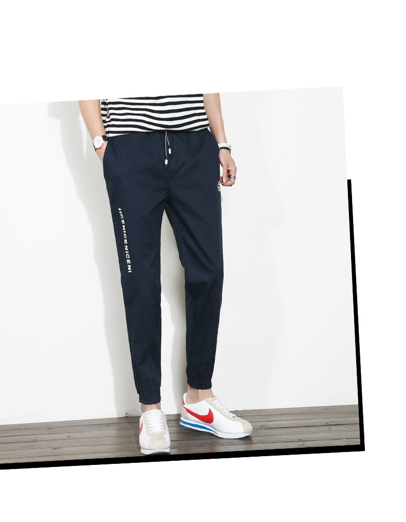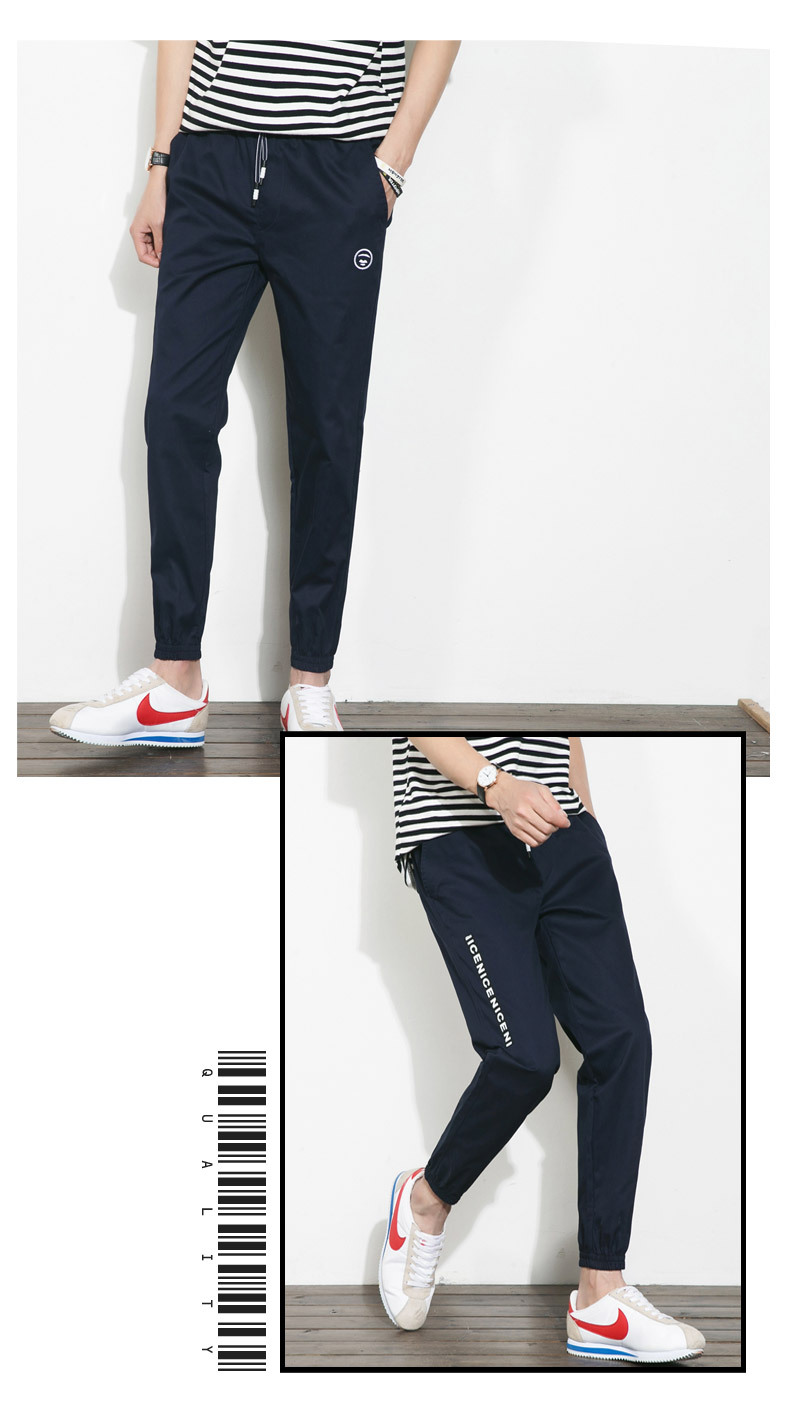 【服饰鞋包】。夏季大码裤子松紧腰裤男日系休闲裤小脚裤青年男士纯棉九分裤