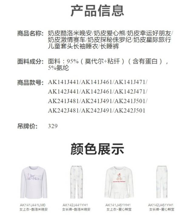 【春上新】8楼爱慕儿童Aimer Kids女孩奶皮酷洛米晚安套头长袖睡衣AK141J441,吊牌价329元