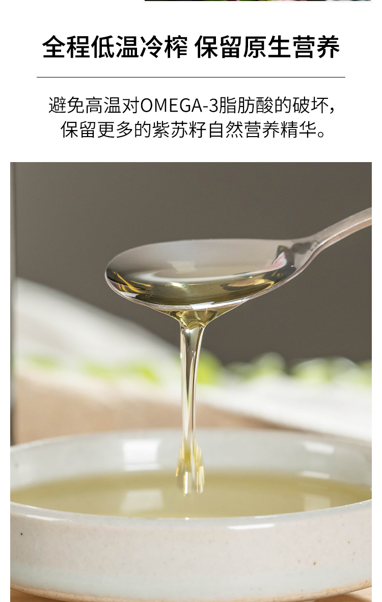 有机紫苏籽油 | 甄选内蒙古有机紫苏籽,低温冷榨,头道压榨,α-亚麻酸含量60-70%,可直饮、浇淋、拌酸奶、拌沙拉。⭐️顺丰快递