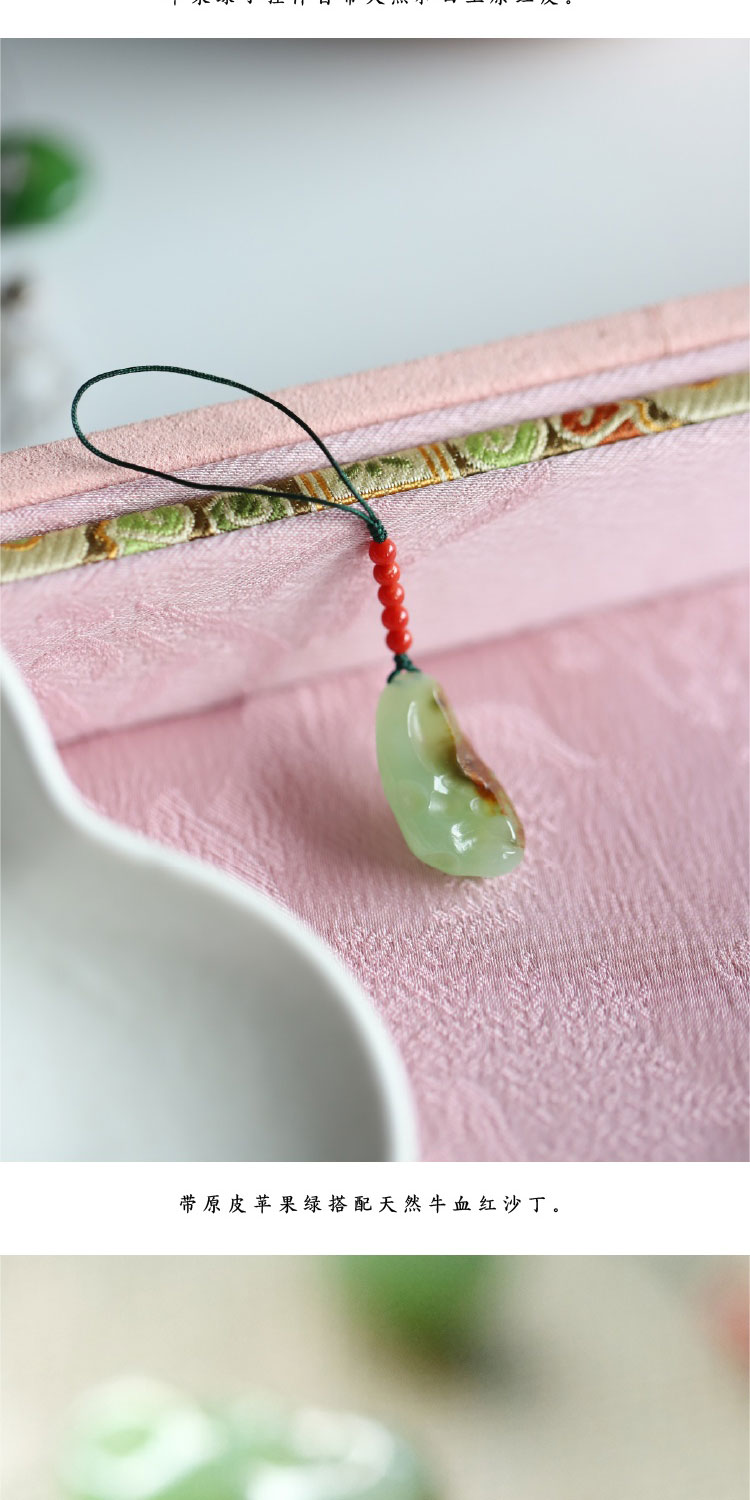 米马饰物 天然和田玉苹果绿太湖石 随形压襟吊坠 时来运转 吉祥随身