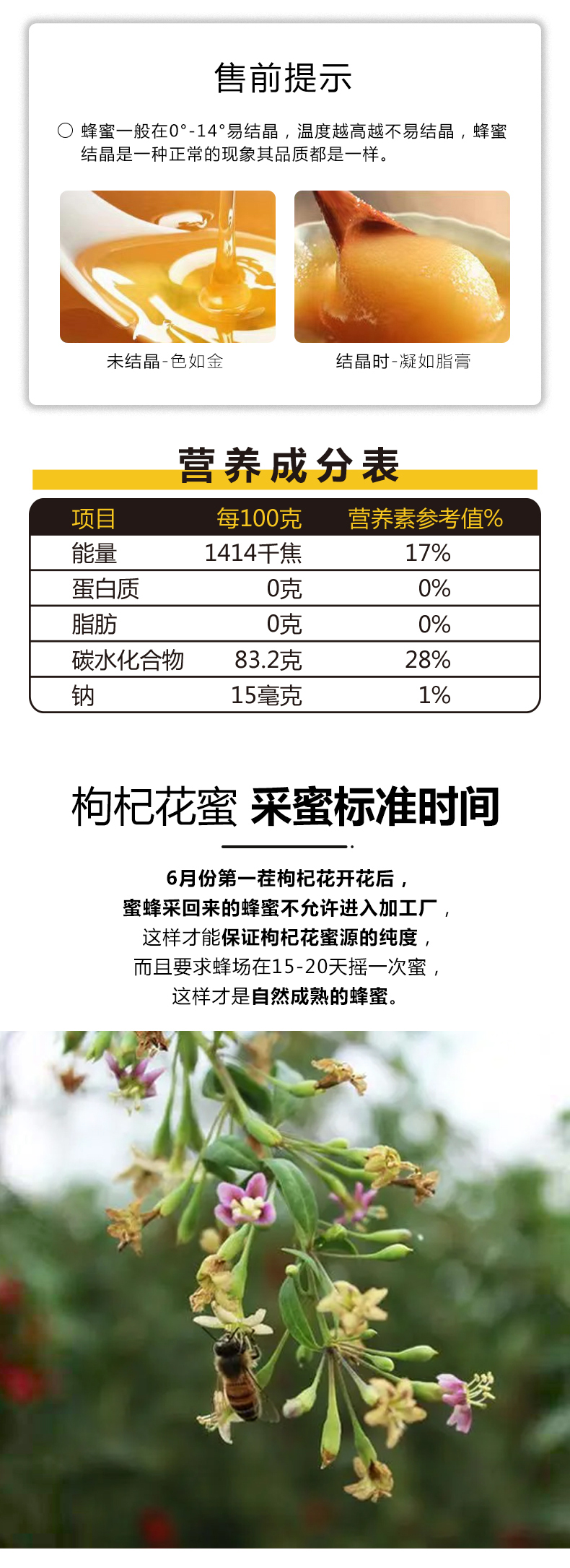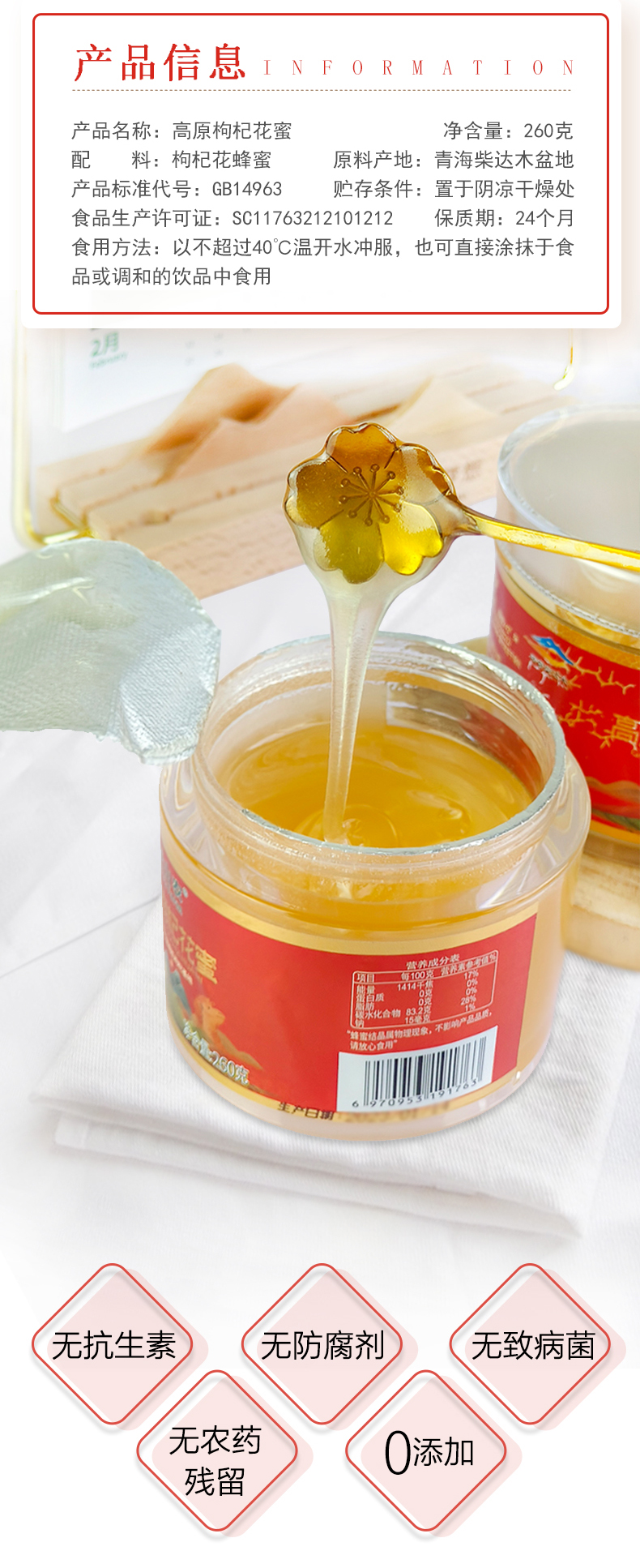 【厂商直发】高原枸杞花蜜蜂蜜260g装自然成熟拒绝添加包邮