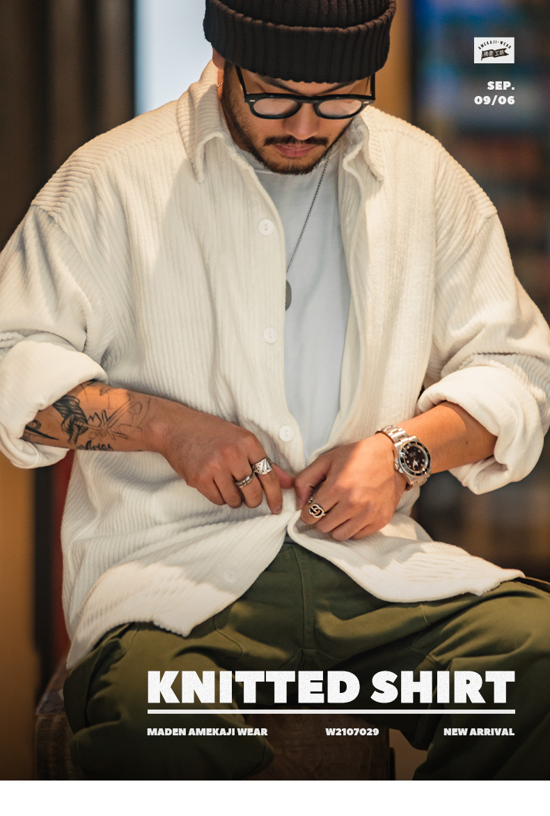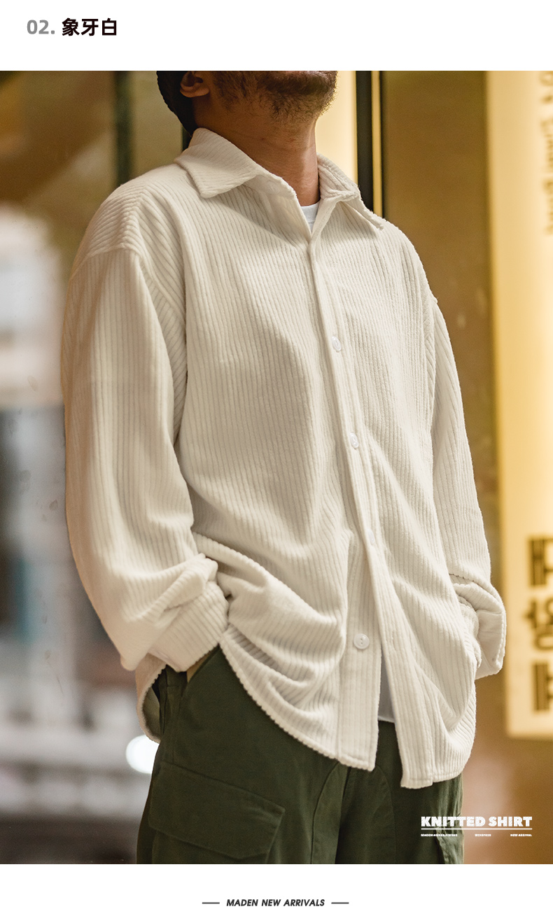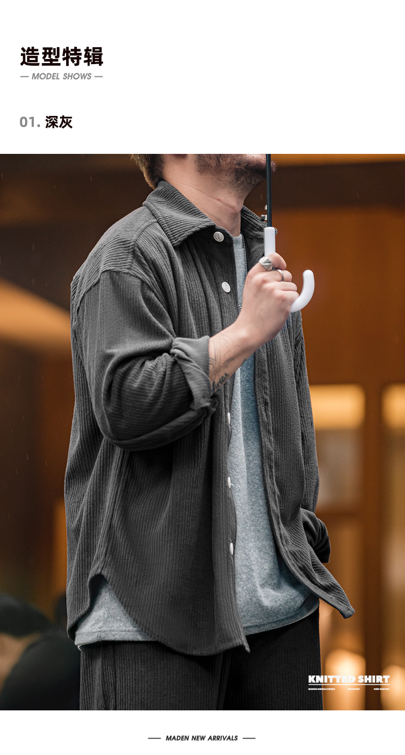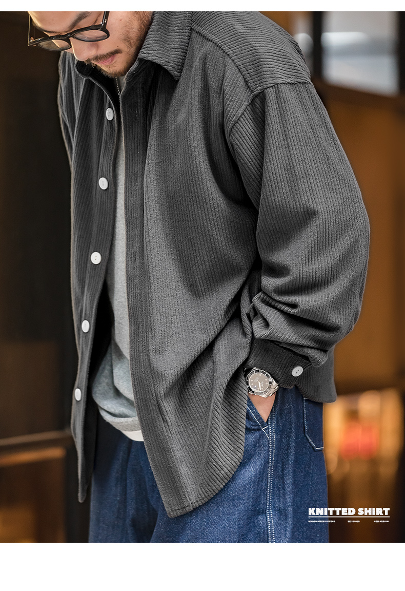 工装优选 日系复古提花针织深灰色落肩长袖衬衫宽松厚实外套寸衣