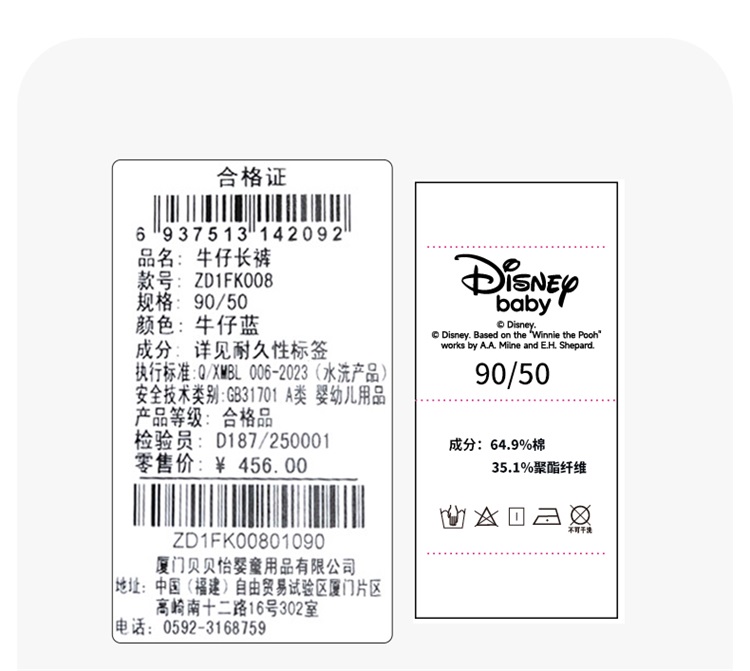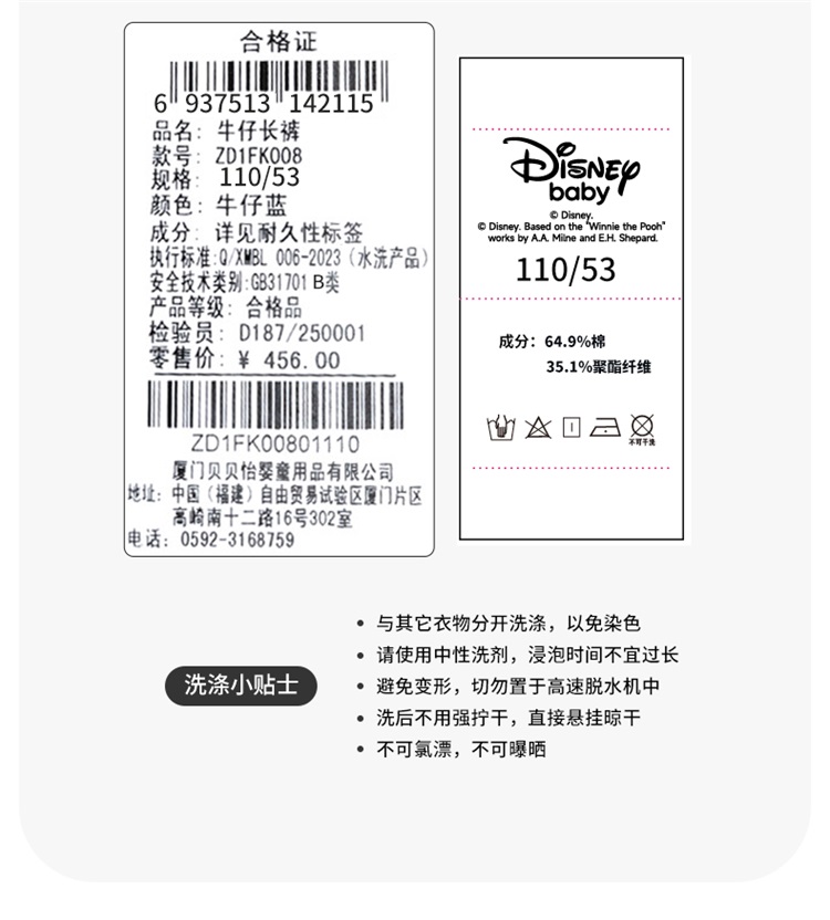 迪士尼春季女童牛仔长裤ZD1FK008
