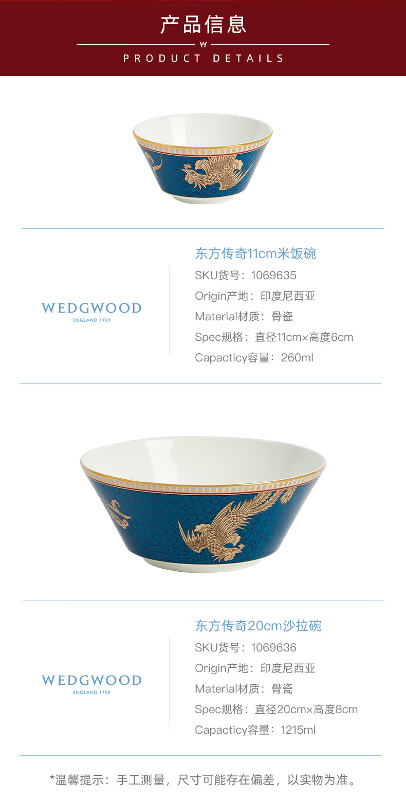 【6F】WEDGWOOD威基伍德东方传奇餐碗骨瓷沙拉米饭碗高颜值家用面碗 东方传奇米饭碗11cm