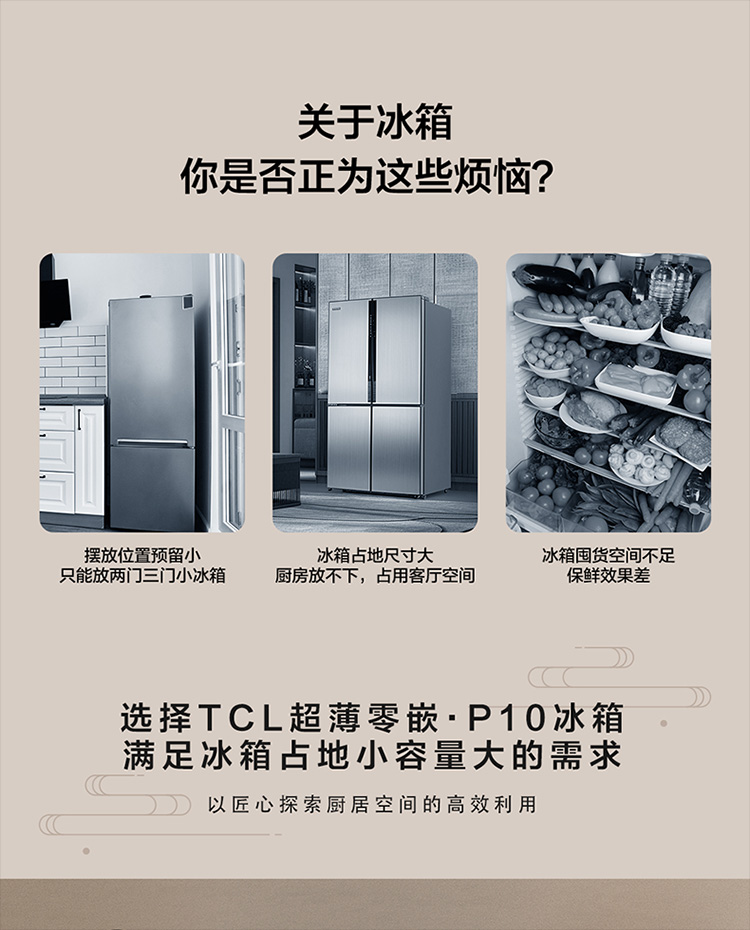 【TCL冰箱】TCL 521升对开门双开门大容量超薄冰箱 双变频节能 风冷无霜 R521T11-SP(咨询客服送优惠大礼包)
