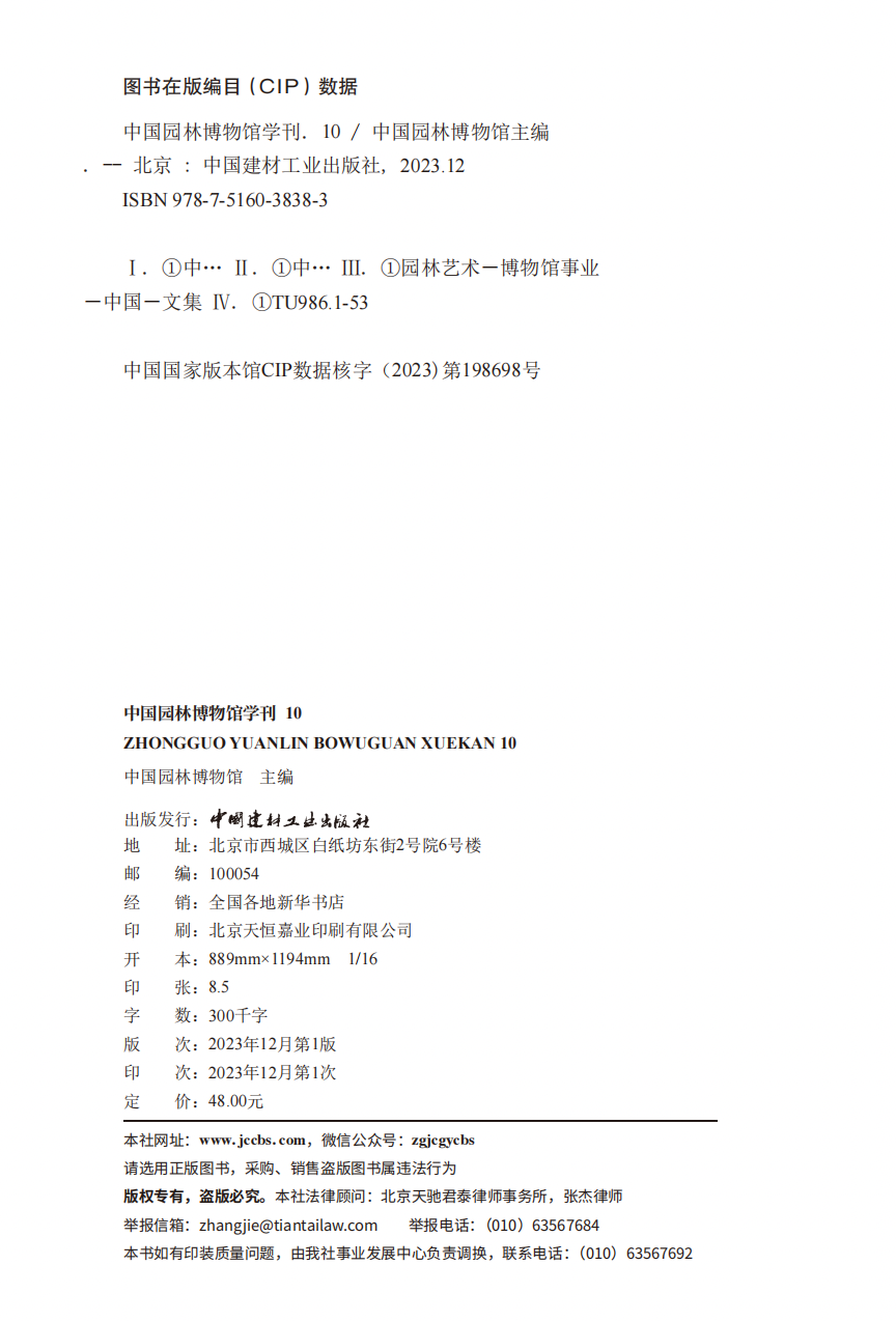 中国园林博物馆学刊. 10 / 中国园林博物馆主编 : 中国建材工业出版社, 2024 ISBN 9787516038383
