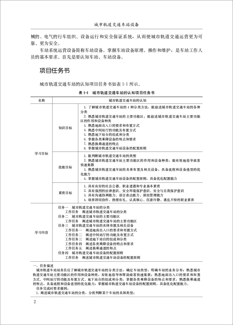 本书以项目任务形式编写,以行业相关核心岗位所需的理论知识和操作技能为主,对城市轨道交通车站设备相关知识进行了阐述。本书主要包括轨道交通车站认知、车站自动售检票系统、车站消防系统、环控及给排水系统、低压动力照明系统、站台门系统、自动扶梯及电梯系统等项目,每个教学任务均包含任务实施,教材内容理论联系实际,让学生真正掌握相关知识内容。