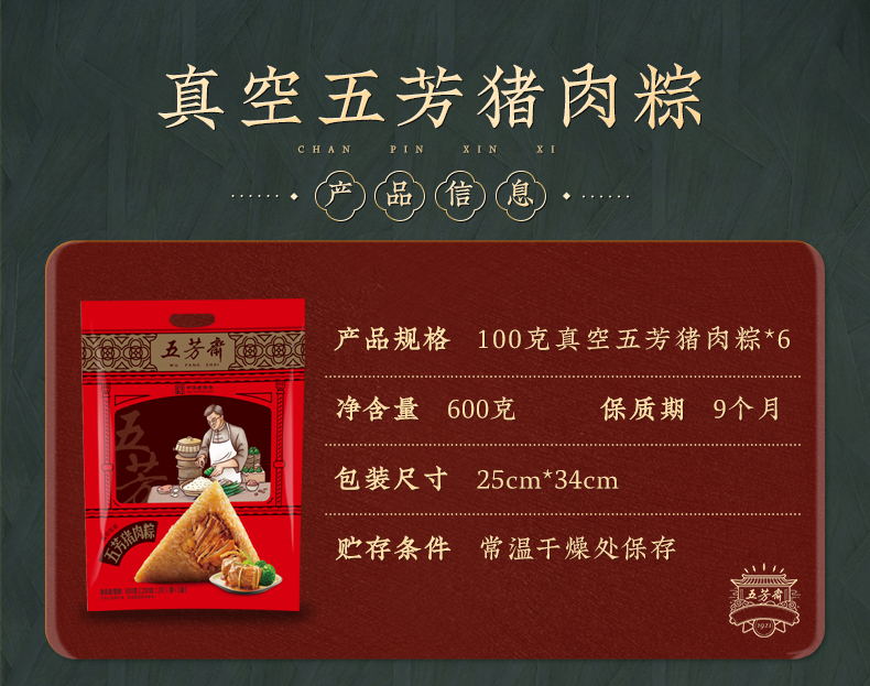五芳斋 真空五芳猪肉粽 老字号爆款 囤货装100g*6