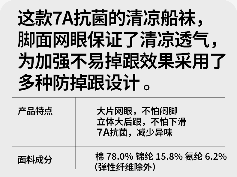 夏季薄款大网眼透气凉感防掉跟7A防臭抑菌短袜男女情侣船袜