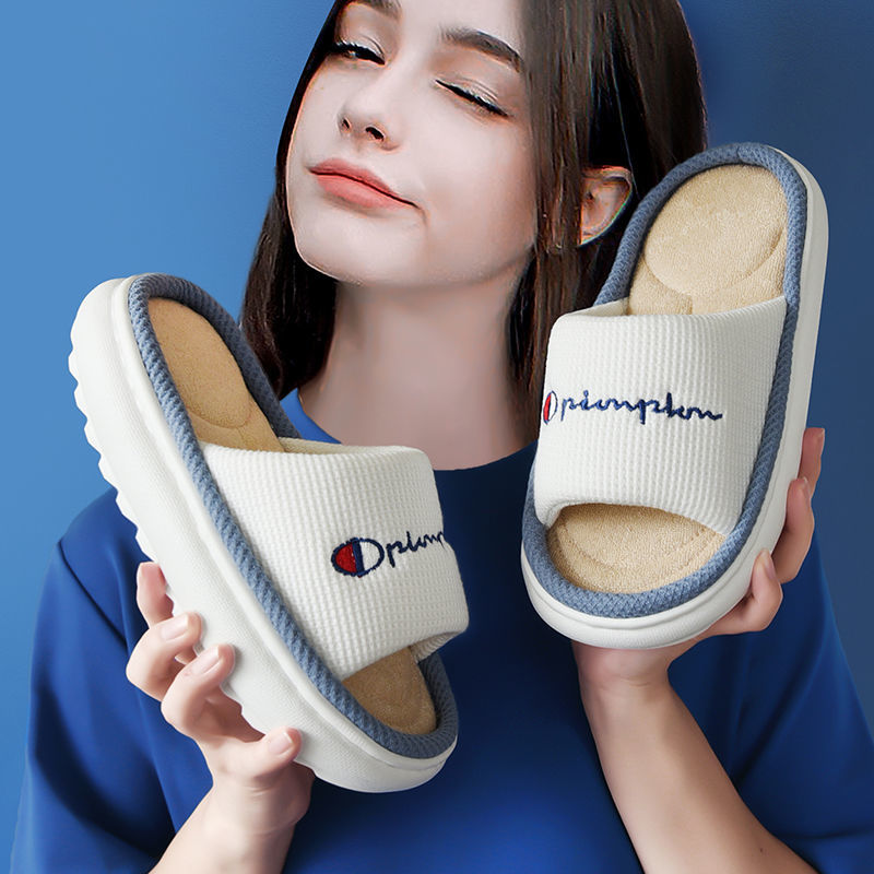 厚底四季亚麻拖鞋女士居家用防臭防滑情侣室内家居可爱棉麻布拖男