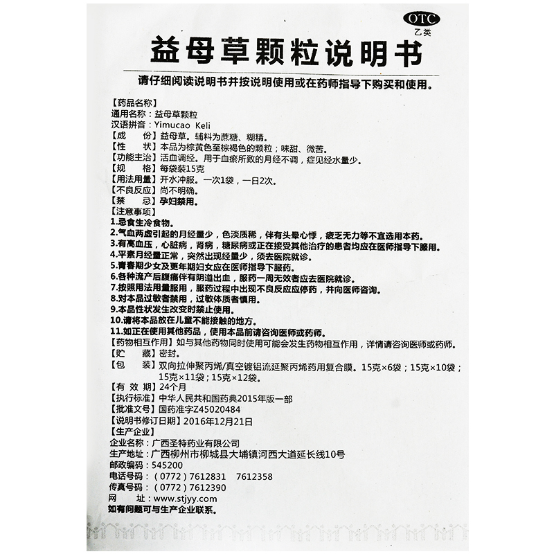 圣特记 益母草颗粒 10袋活血调经月经不调经血量少血瘀妇科药