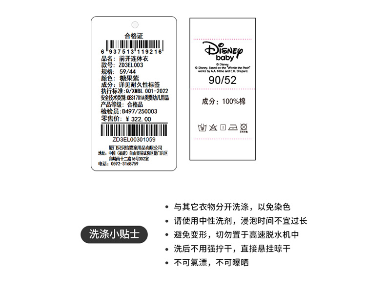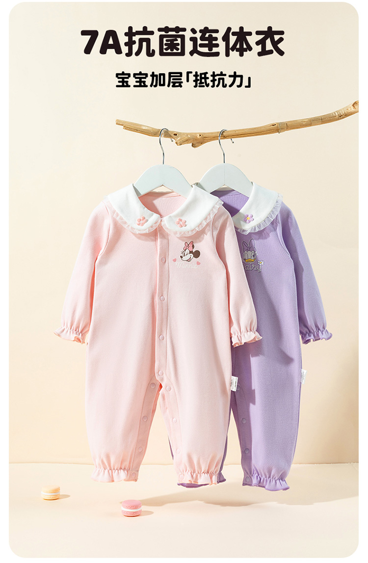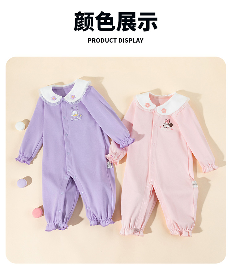 迪士尼宝宝前开连体衣纯棉A类女宝宝哈衣秋季全棉新生婴幼儿爬服ZD3EL003