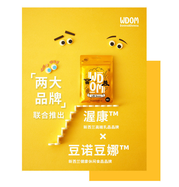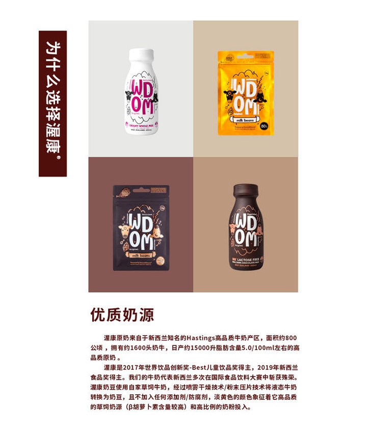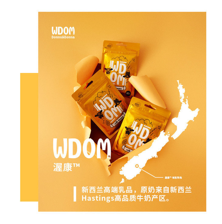 WDOM渥康的奶是2017年世界饮品创新奖儿童饮品奖的得主,原奶来自新西兰知名的Hastings高品质牛奶产区,这款奶片是渥康和豆诺豆娜联合推出的,用的是渥康自家的草饲牛奶,经过喷雾干燥技术和粉末压片技术将液态牛奶转换为奶豆,且没有任何添加剂,宝宝可以放心吃!