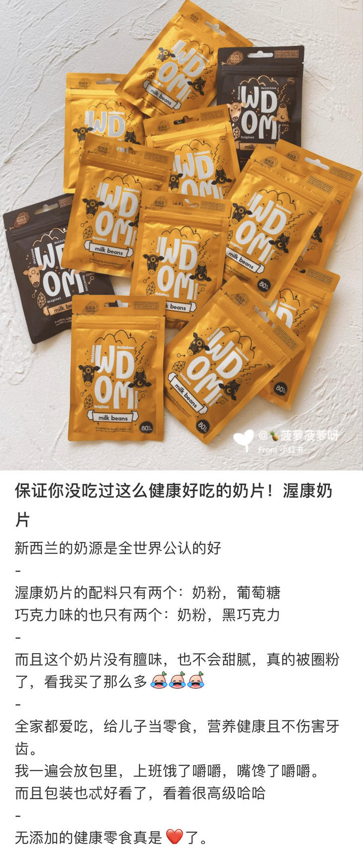 WDOM渥康其实主要是做儿童奶制品的,他们家的奶我跟店里几款比了下,并没有很出色,就先不考虑了,但是奶片真的很好吃,连我这个不爱喝牛奶的人都觉得很优秀。