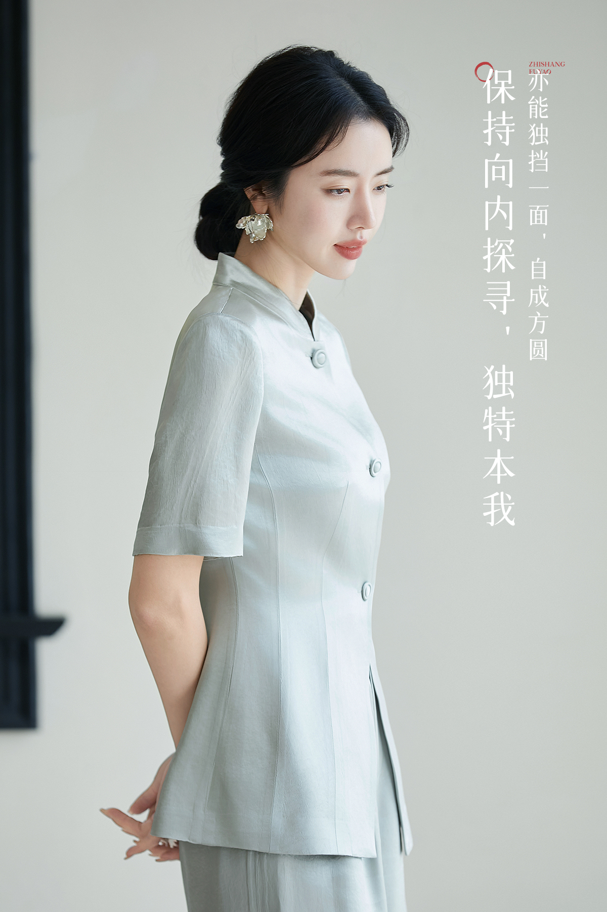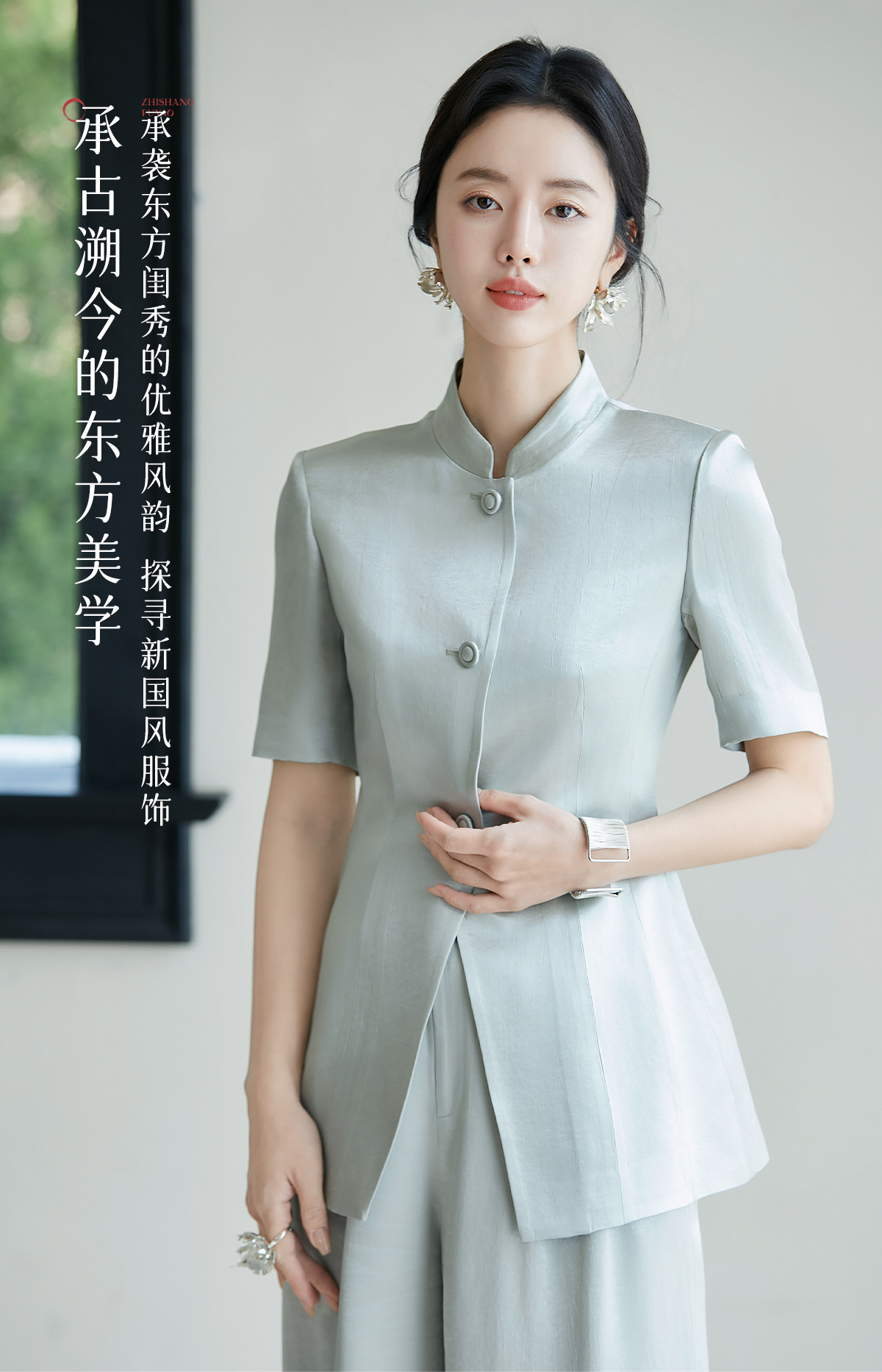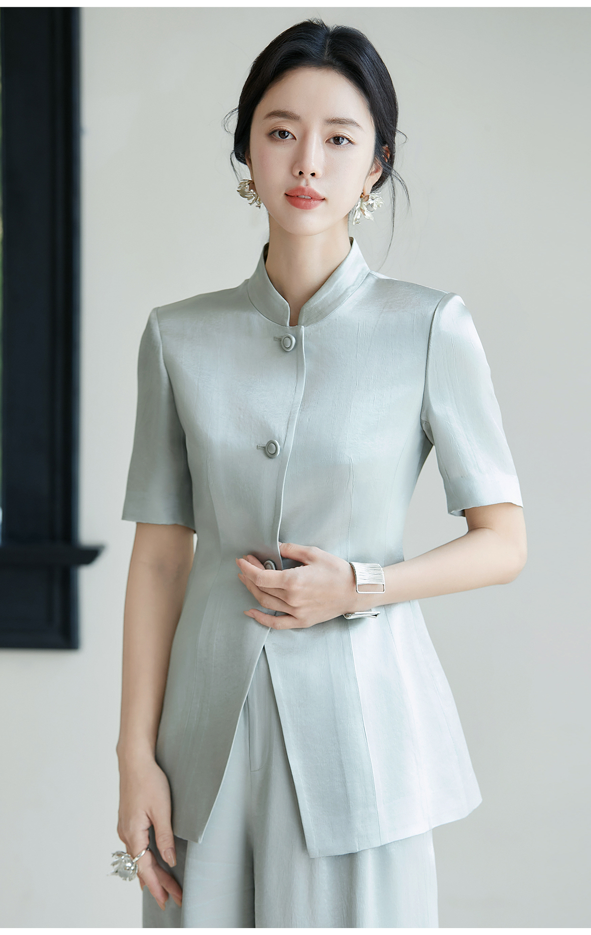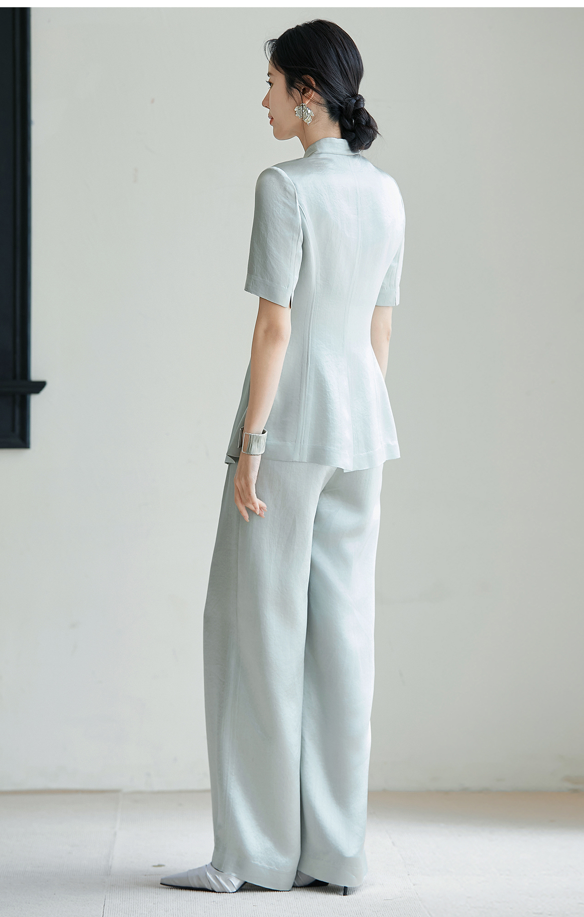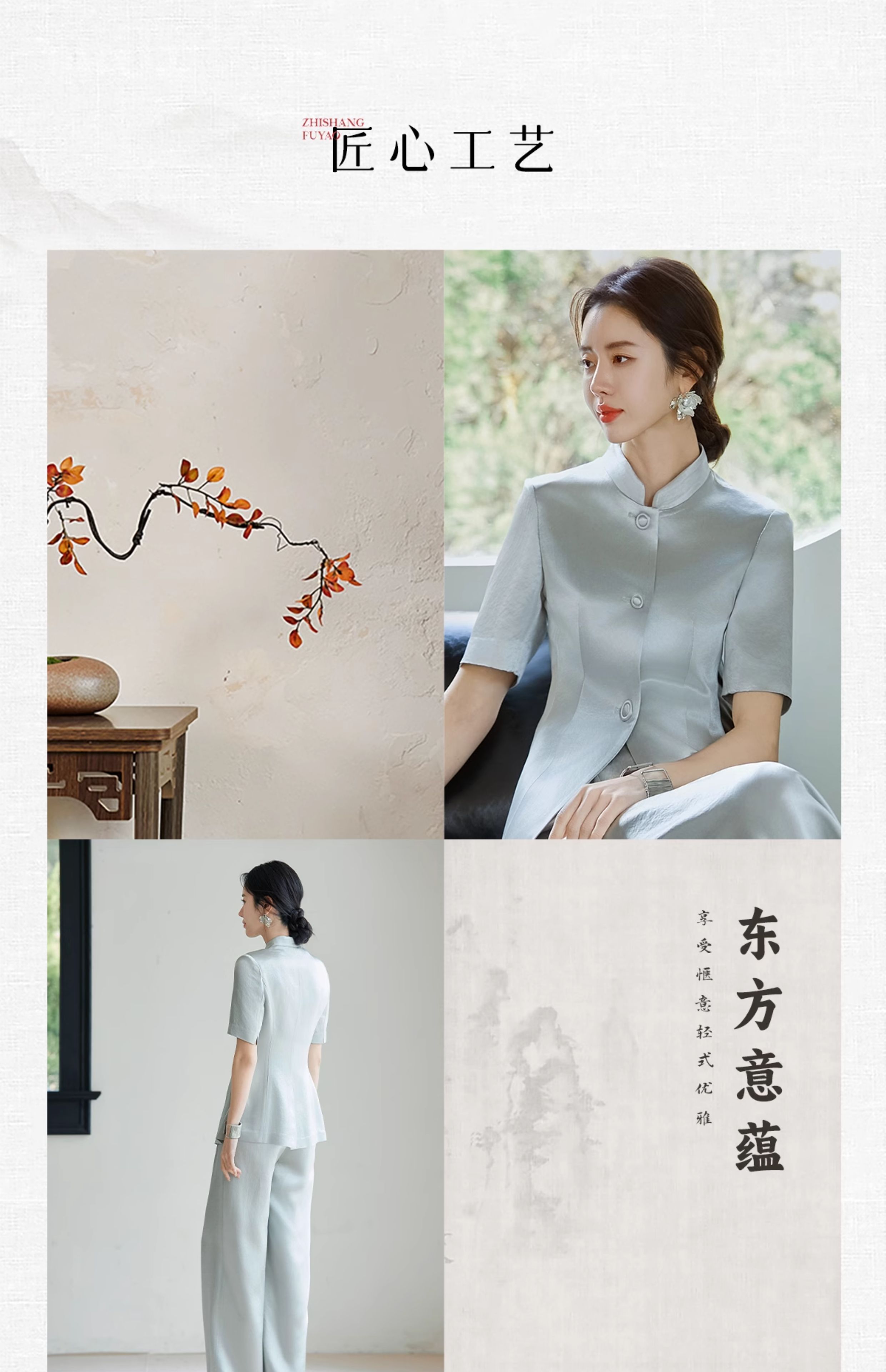 FUYAO扶摇 新中式国风套装女夏新款重磅醋酸立领西装直筒裤两件套