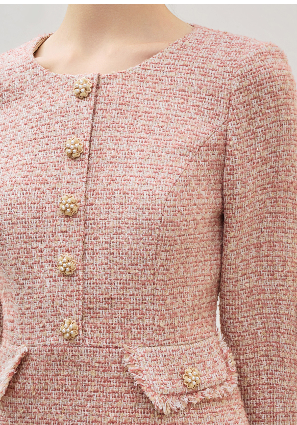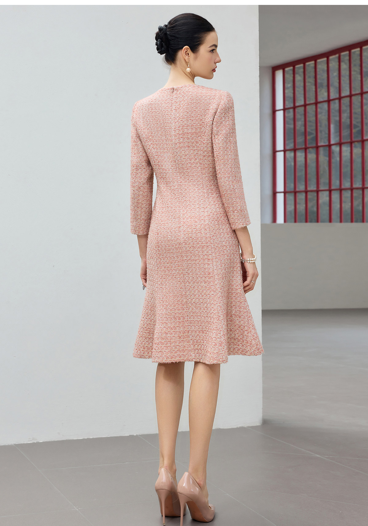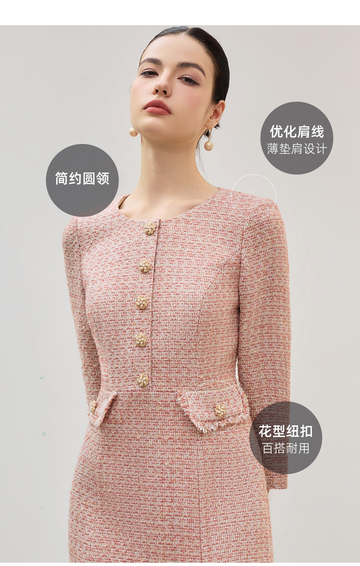 艾尚臣柔焦滤镜小香风粗花呢连衣裙女收腰鱼尾裙摆中长裙气质裙 商品图4