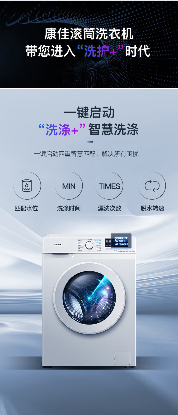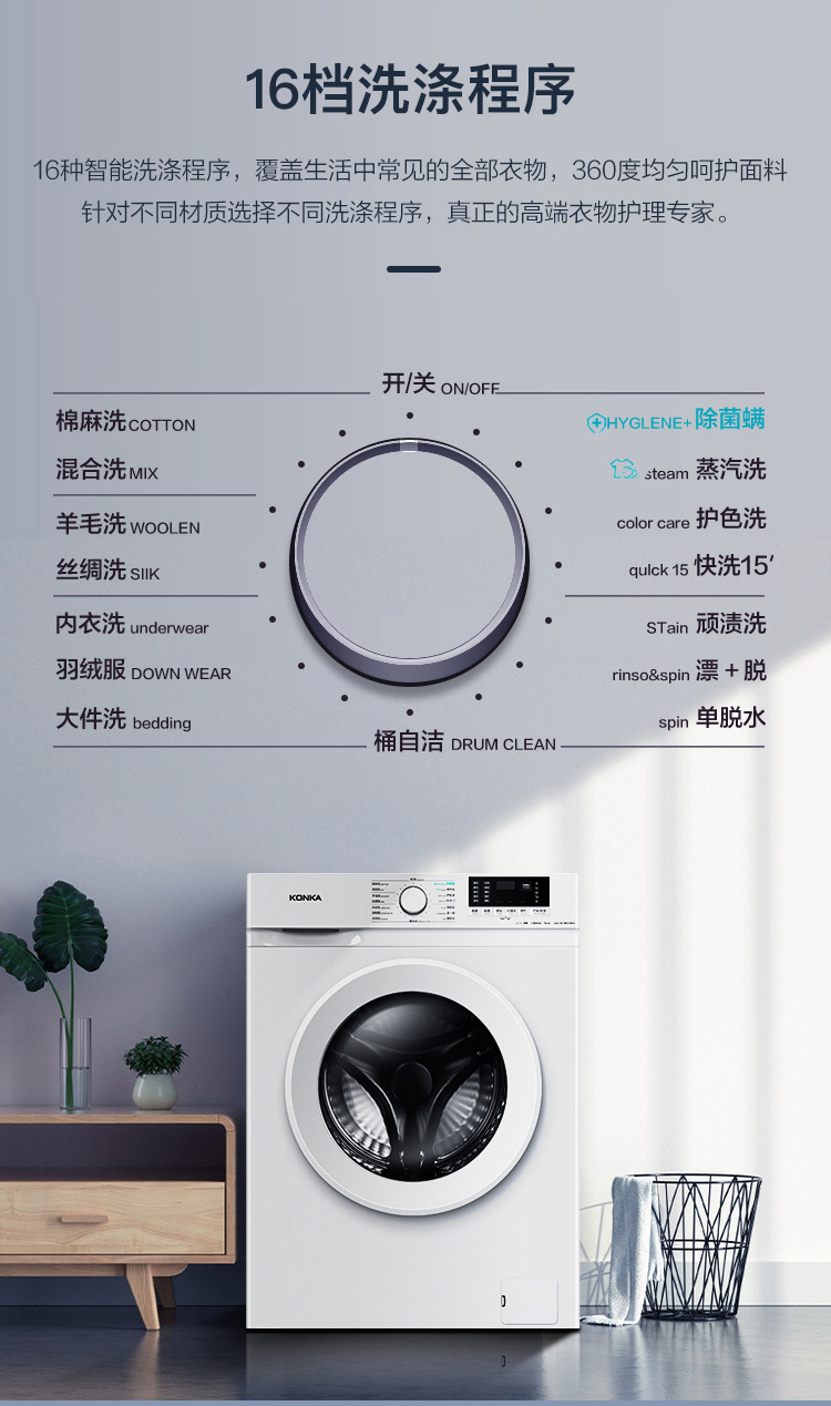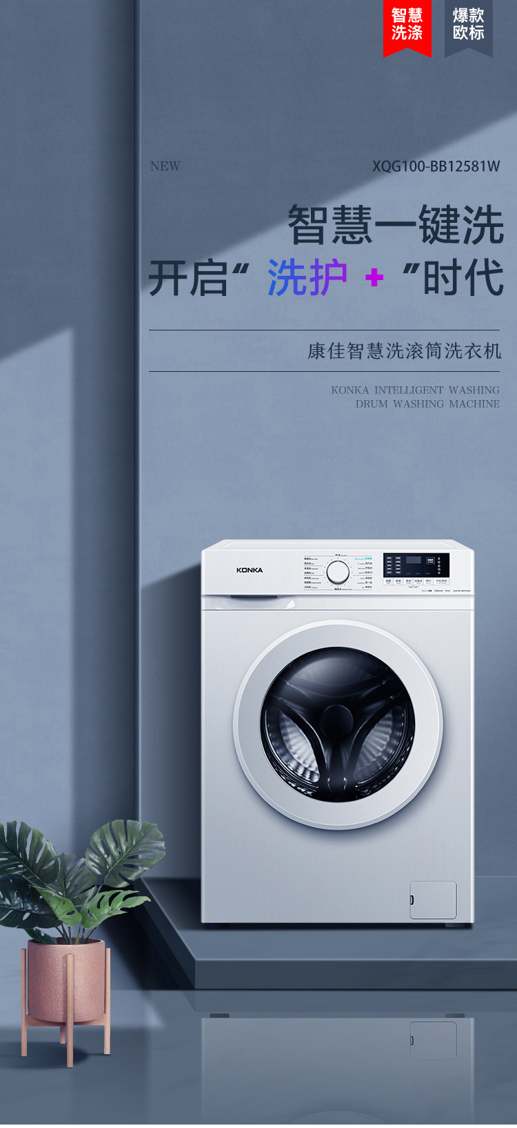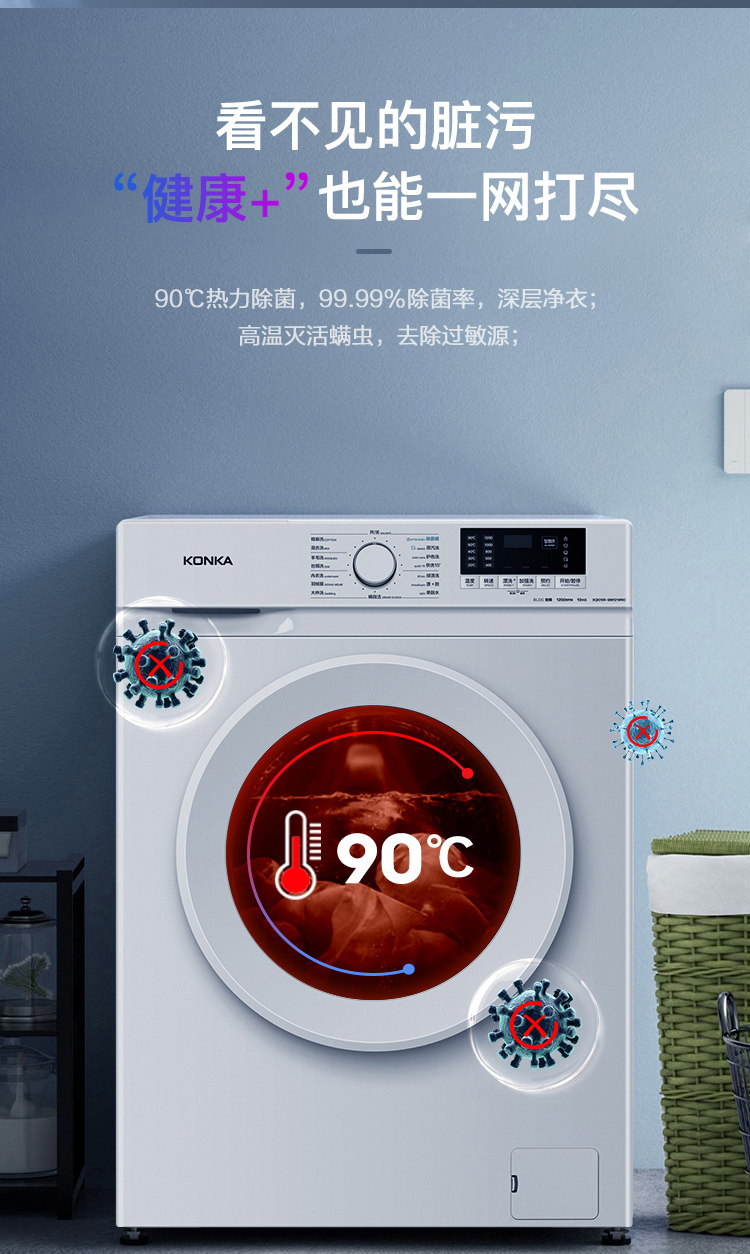 康佳(KONKA)10公斤变频全自动滚筒洗衣机 XQG100-BB12581W