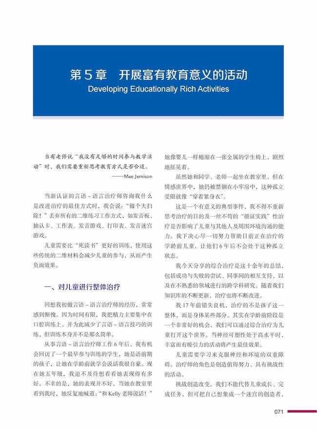 本书是指导从事儿童语音治疗专业人员遵从儿童语音发展规律,寻找最近发展区确定治疗目标,研发适合汉语言文化语音评估及干预的工具书。