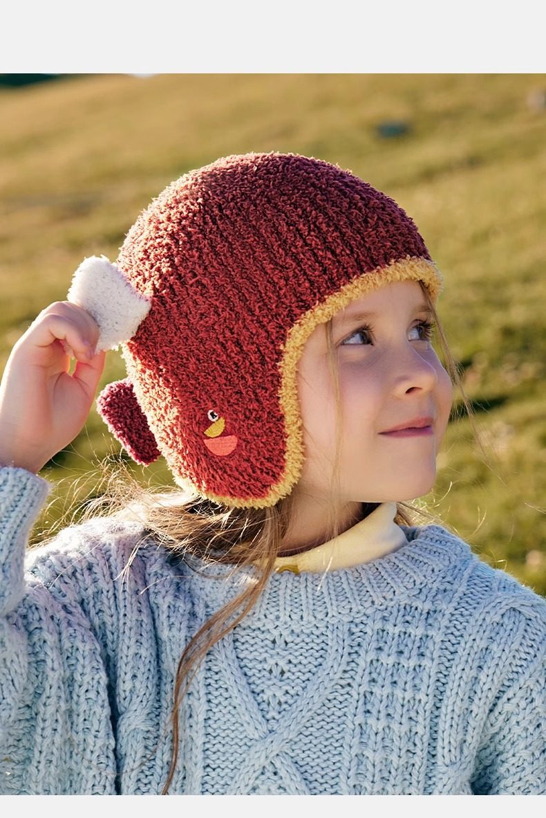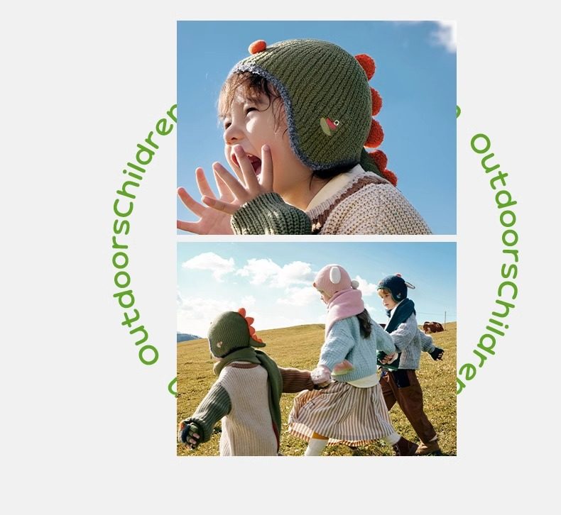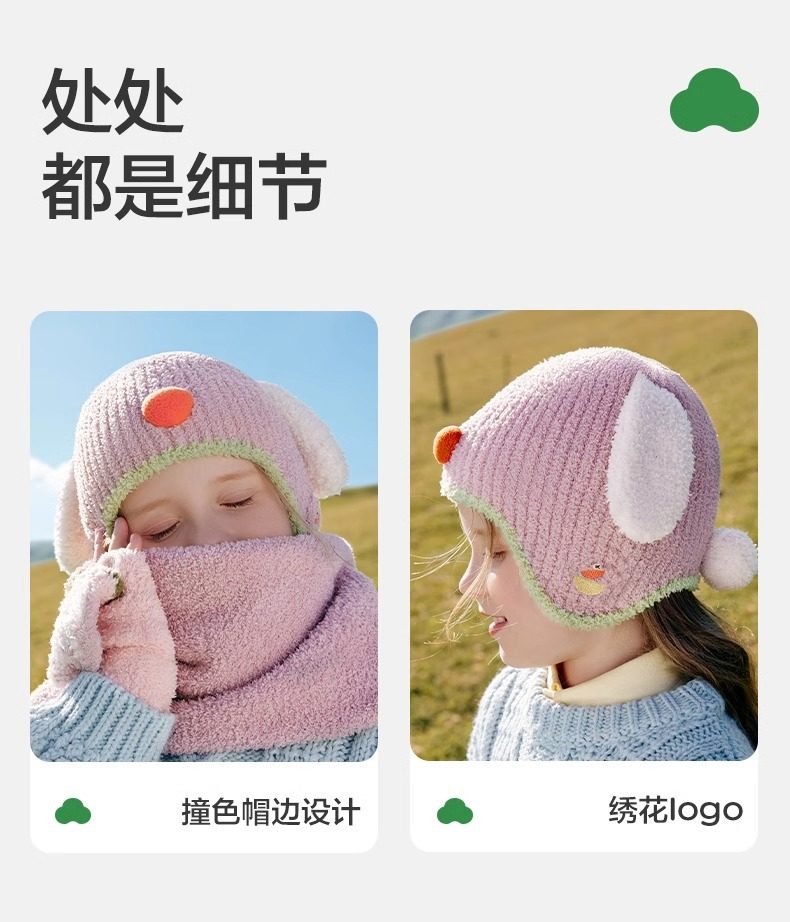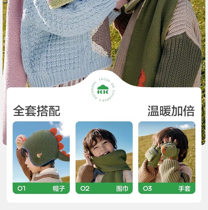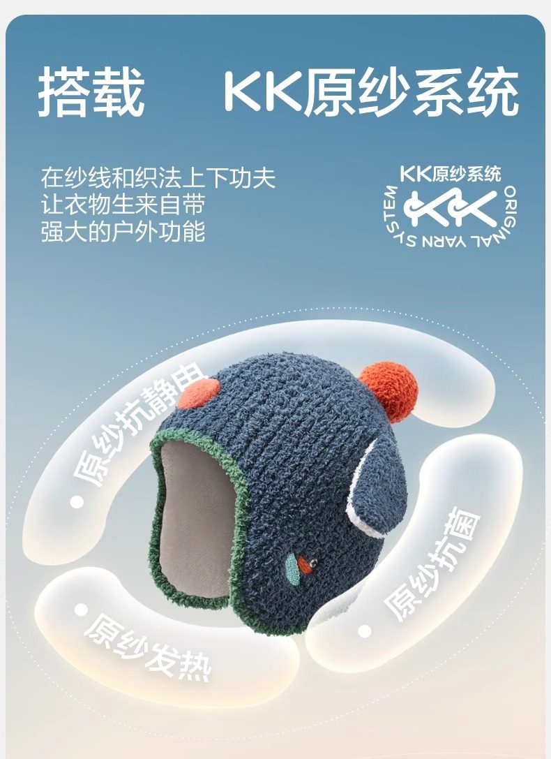 KK树宝宝帽子春秋款儿童针织帽冬护耳2024新款A类女童围巾手套男