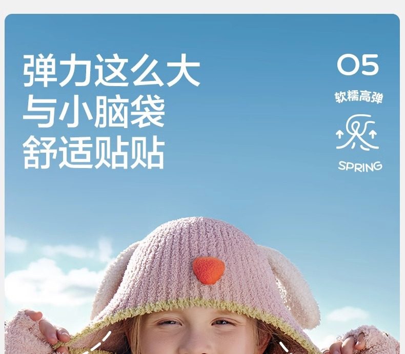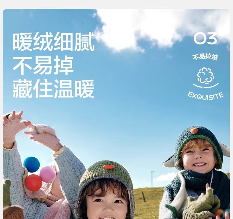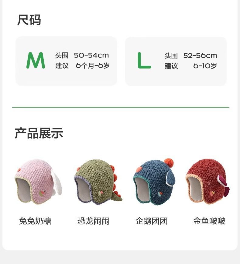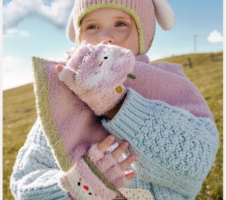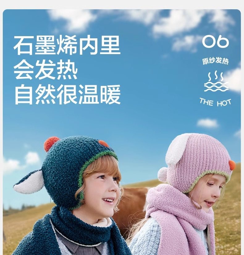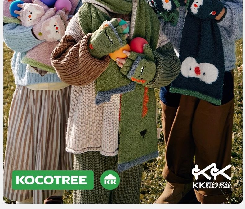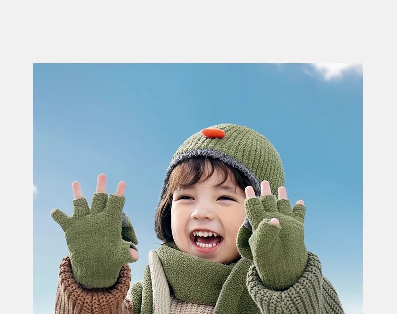 KK树宝宝帽子春秋款儿童针织帽冬护耳2024新款A类女童围巾手套男