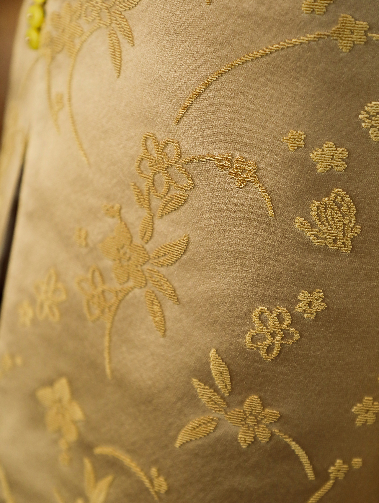盛唐牡丹 | 松花黄真丝漳缎对襟马甲