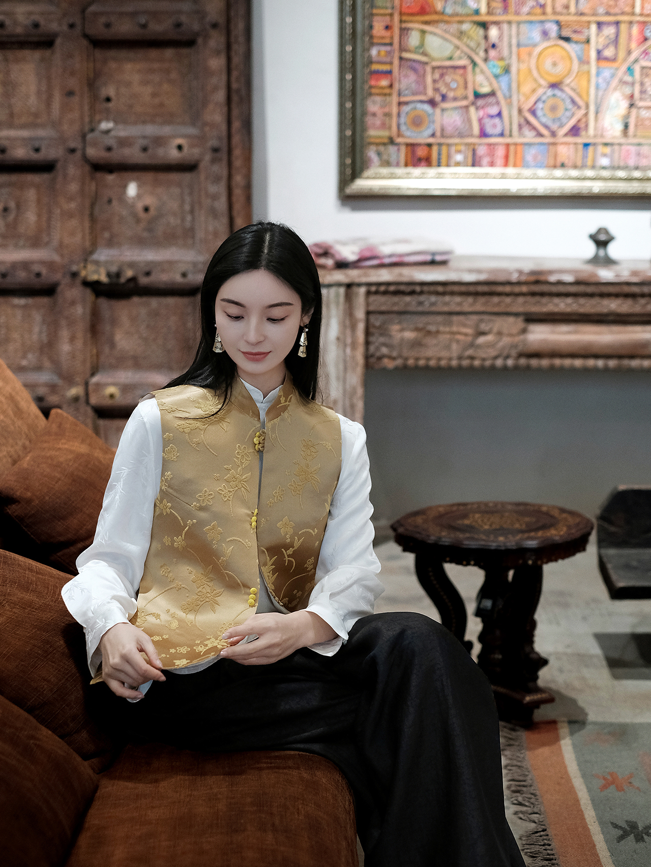 限量款| 盛唐牡丹|花开祥瑞宋锦圆领马甲