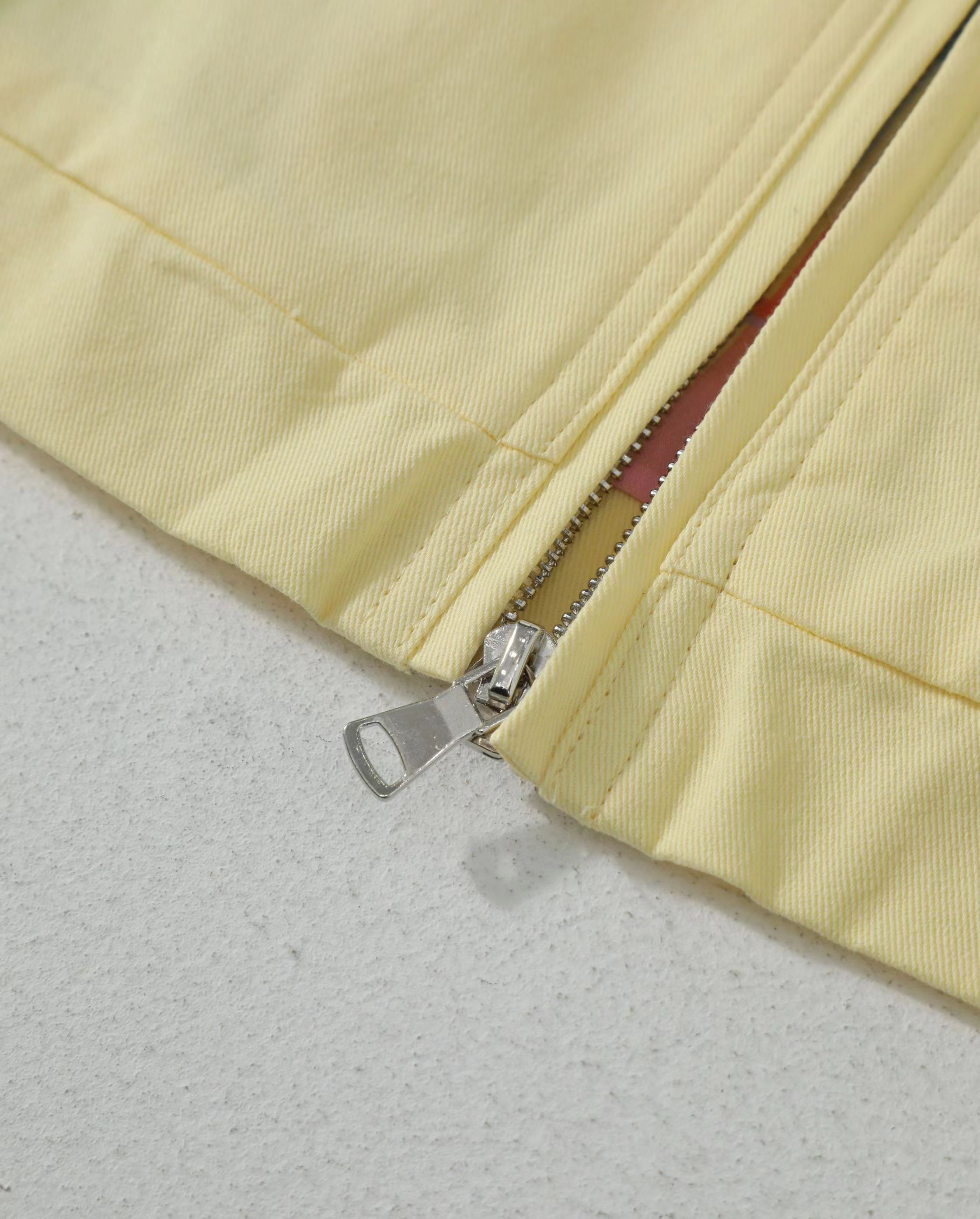 古着哈灵顿夹克外套 精典版型为基调,注入美式复古灵魂!这款夹克以翻领拉链设计与防风轮廓打造率性风格,内衬撞色格纹细节低调彰显品味,高饱和度色彩碰撞迸发视觉活力——「小鸡黄」清新亮眼,瞬间点亮整体造型,轻松在街头成为焦点。宽松剪裁对身材包容性极强,无论叠穿或单穿皆能驾驭多种风格。从休闲出行到潮流街拍,一件轻松拿捏复古与潮流平衡感,百搭属性直接满!