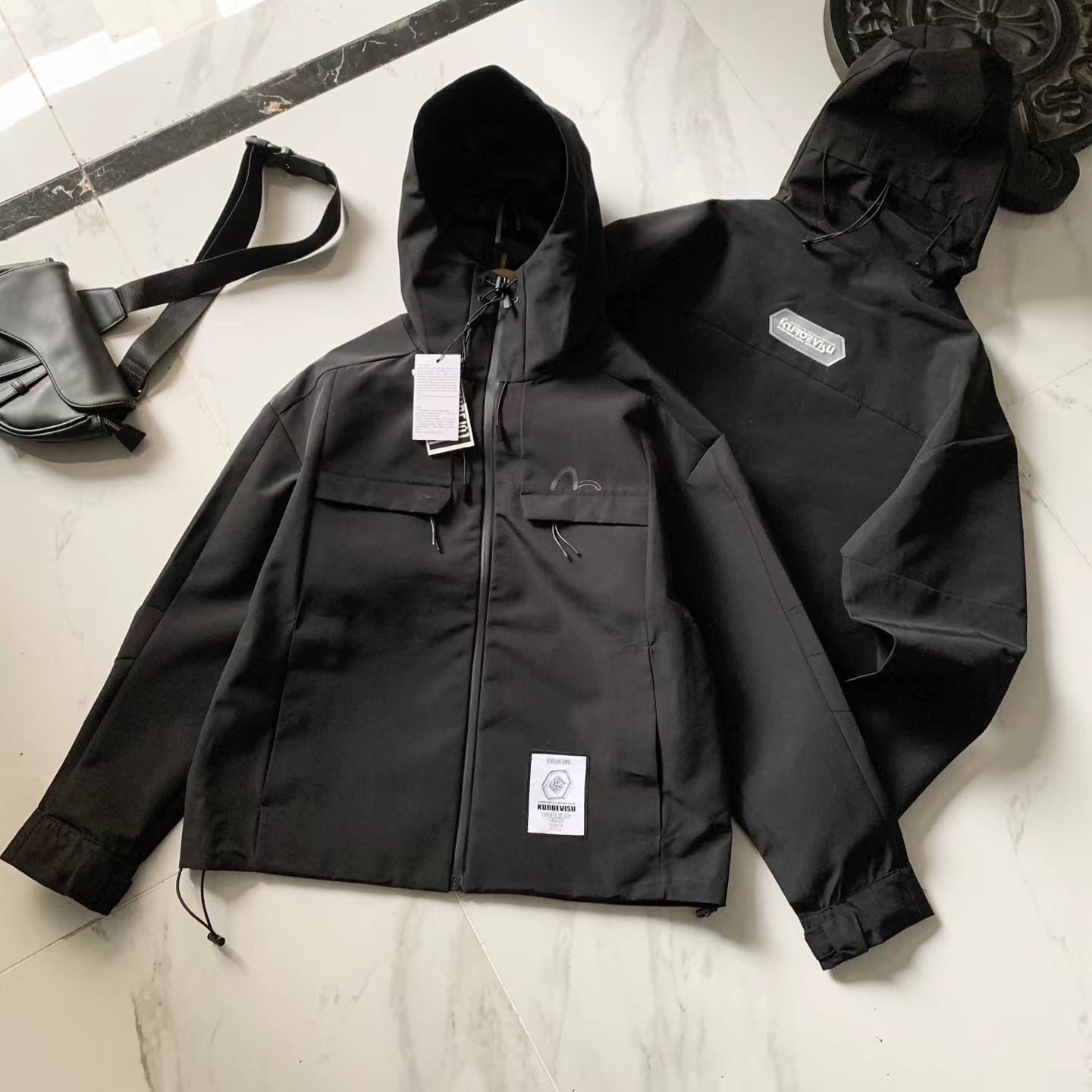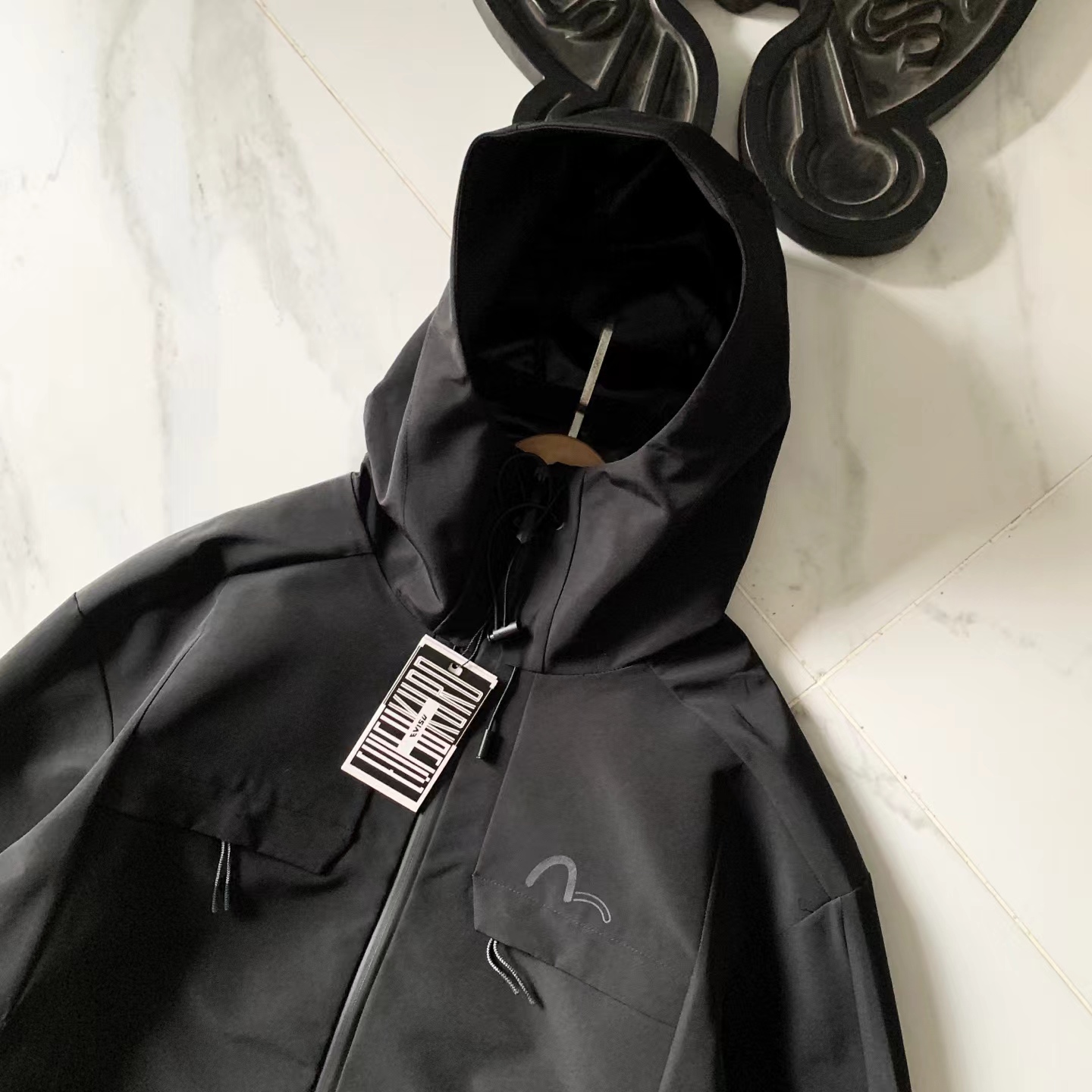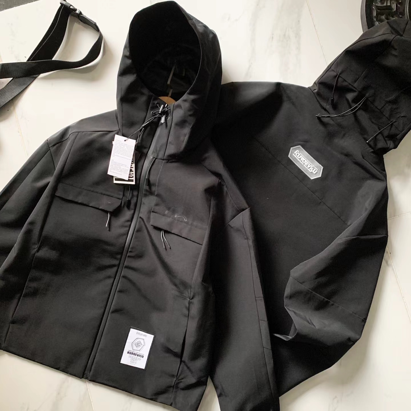 这款冲锋衣酷感升级,冲锋衣与街头工装风相结合,前胸与后背装饰标更凸显品牌风格(醉大穿230斤)