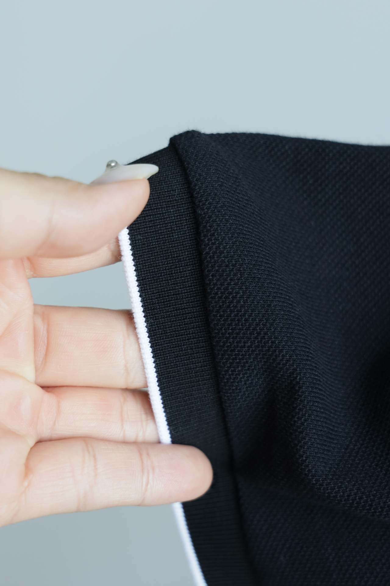 领口袖口螺纹都做了细边拼色装饰