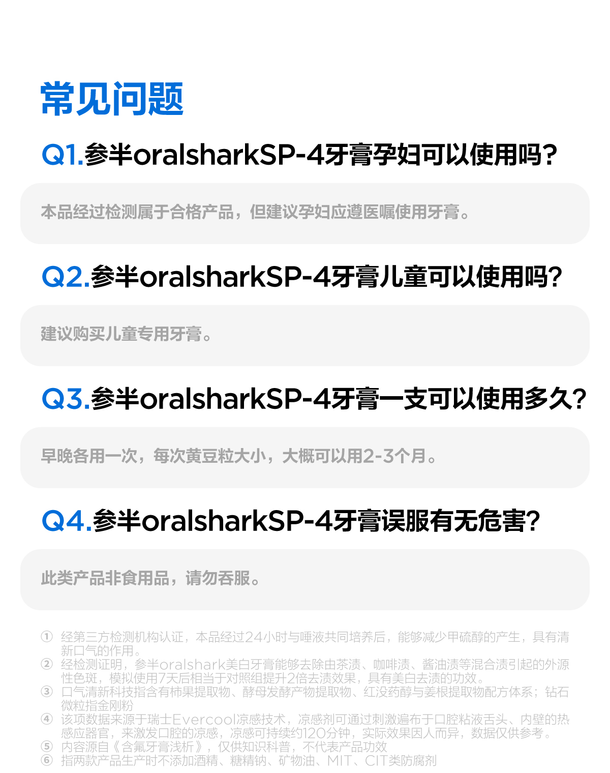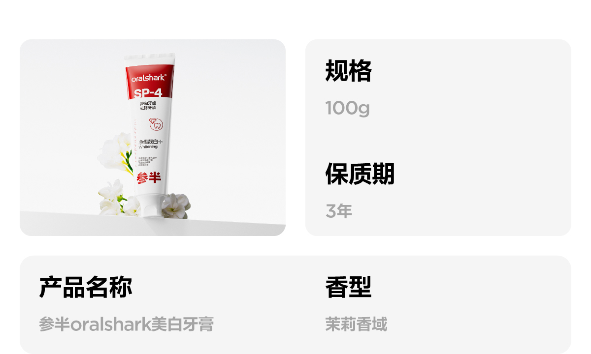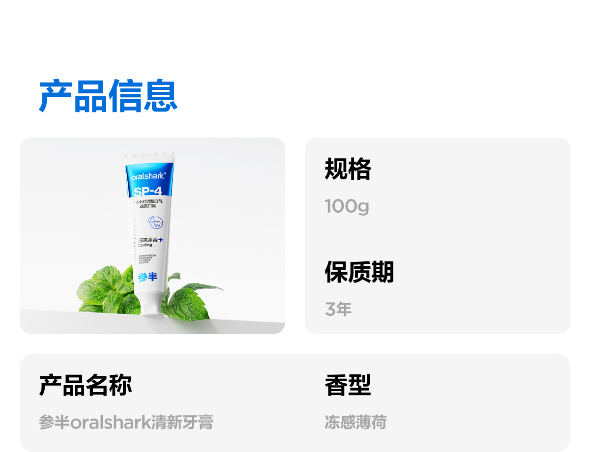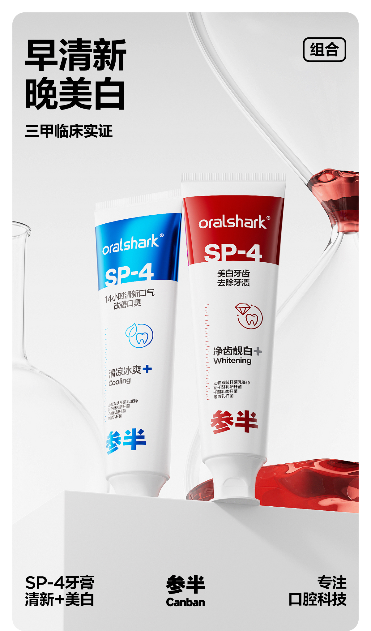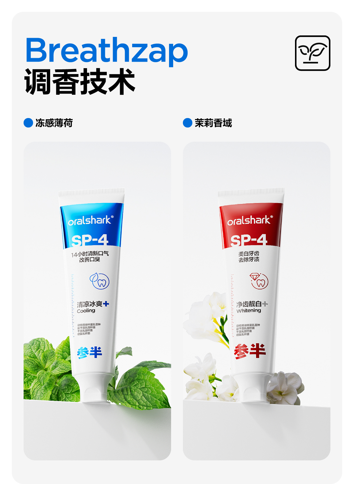 【先领券后下单】参半Oralshark SP-4美白/清新牙膏100g