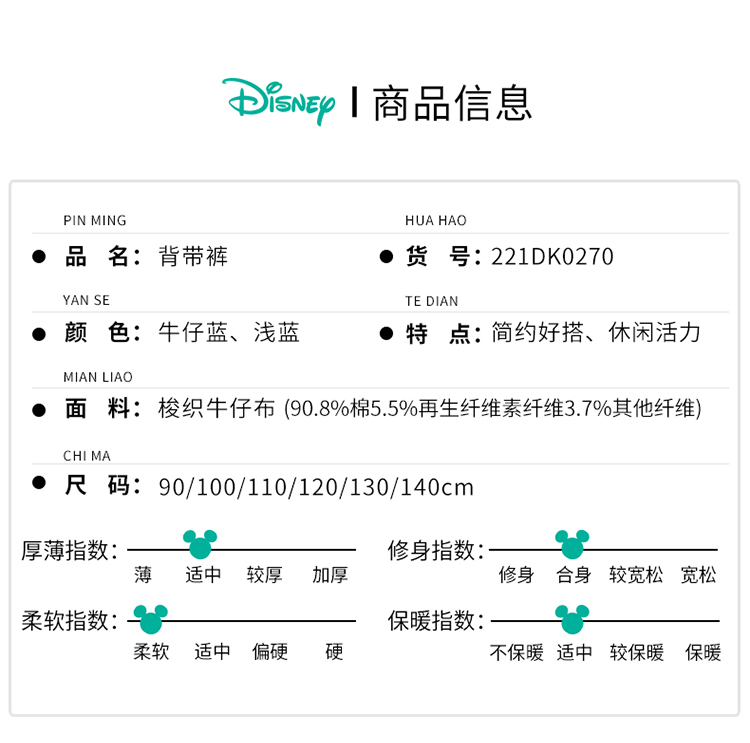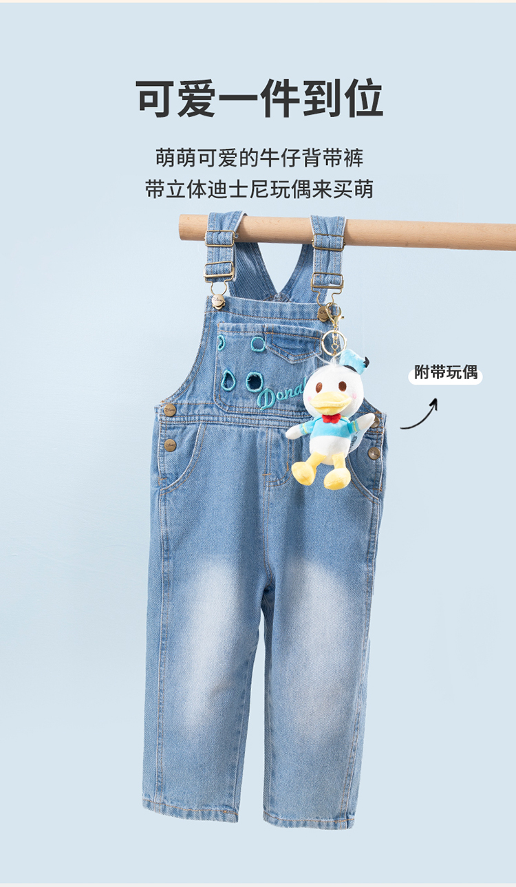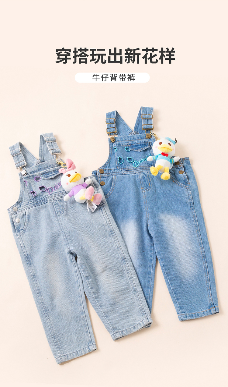 【商场同款】迪士尼童装女童牛仔背带裤米妮可爱洋气宝宝春秋款休闲长裤子221DK0270