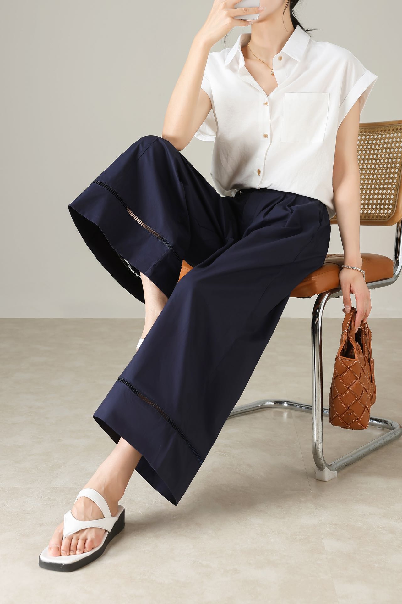 【智小姐抗皱全棉花边阔腿裤】夏日轻盈,自在如风 | 100%棉大阔腿裤,会呼吸的天然棉,宽摆生风,畅享清凉,吸湿速干,清爽随行