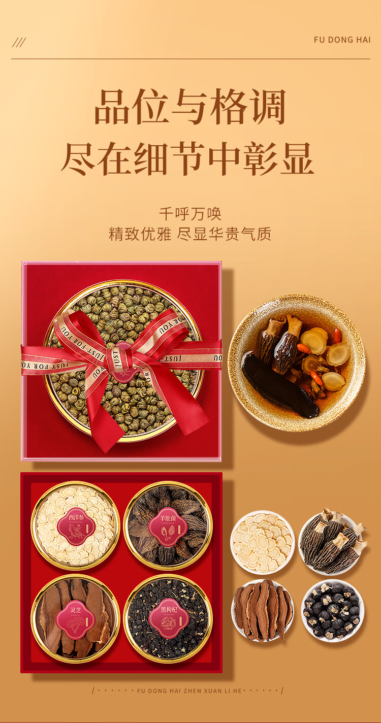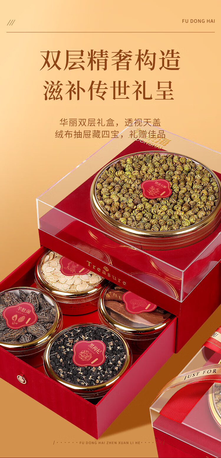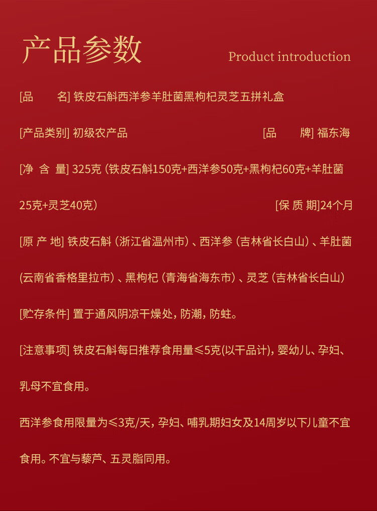 福东海 铁皮石斛西洋参片羊肚菌黑枸杞灵芝五拼325克礼盒 送长辈高端节日送礼 团购