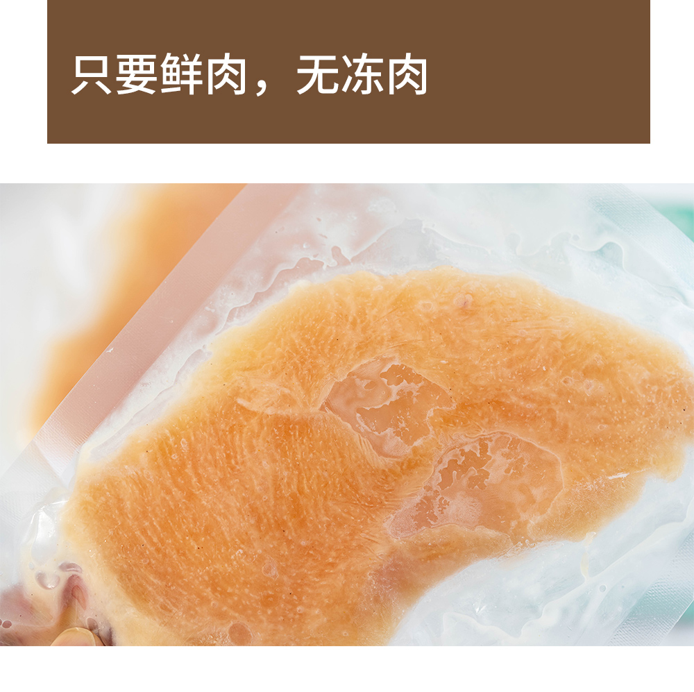 【配料表】鸡胸肉、饮用水、白砂糖、淀粉、大豆分离蛋白、食用盐、味精、洋葱粉、大蒜粉、食品添加剂(木瓜蛋白酶)