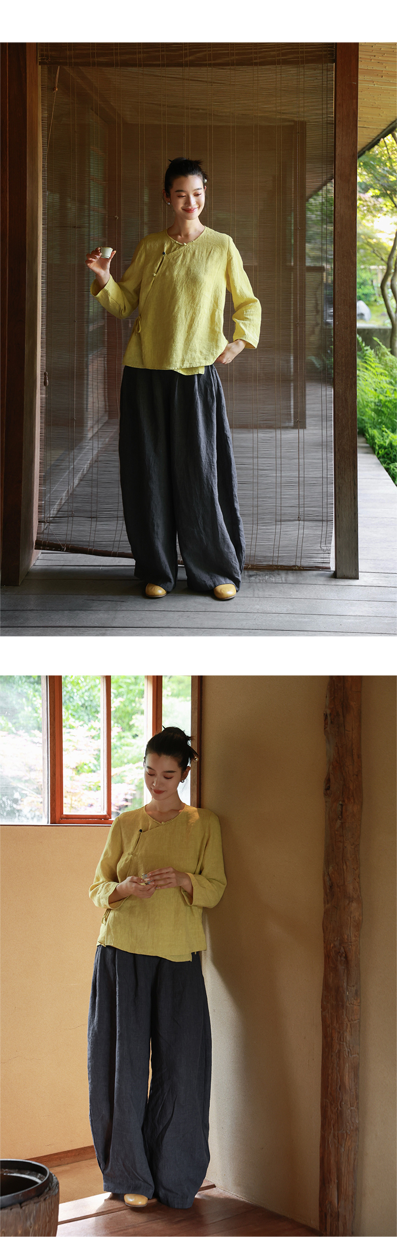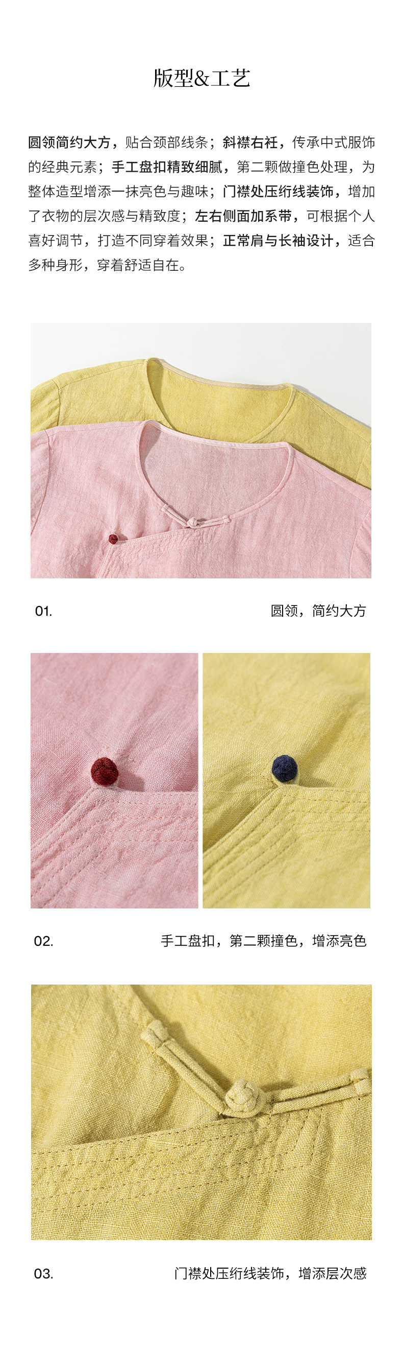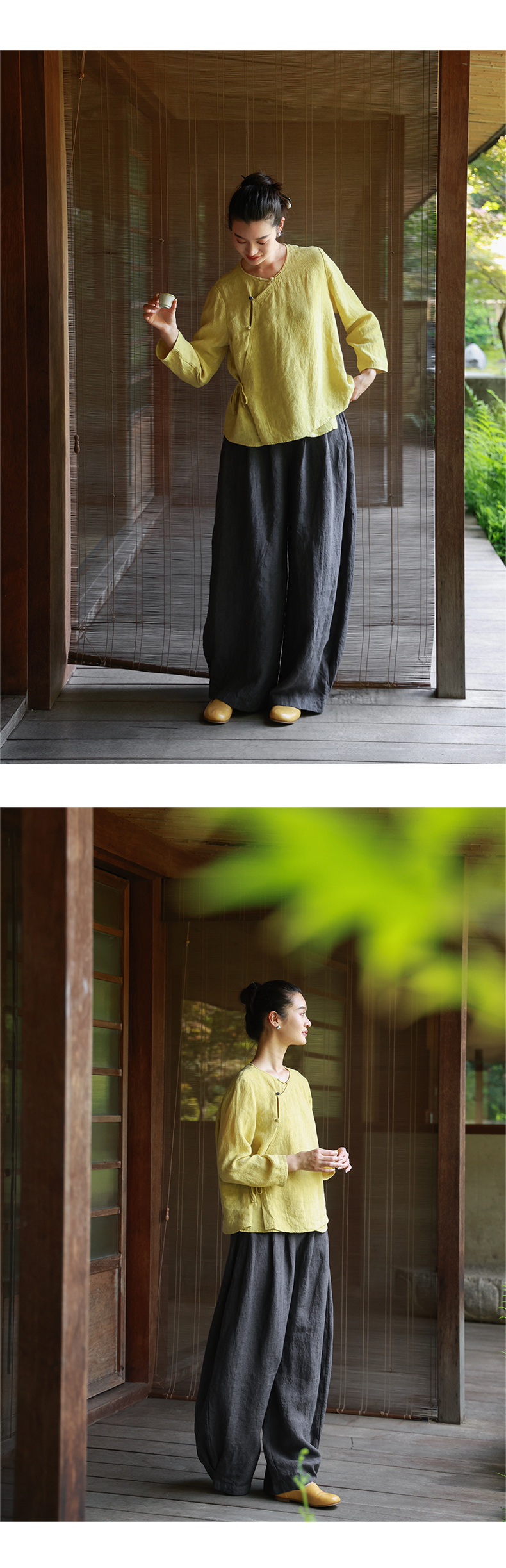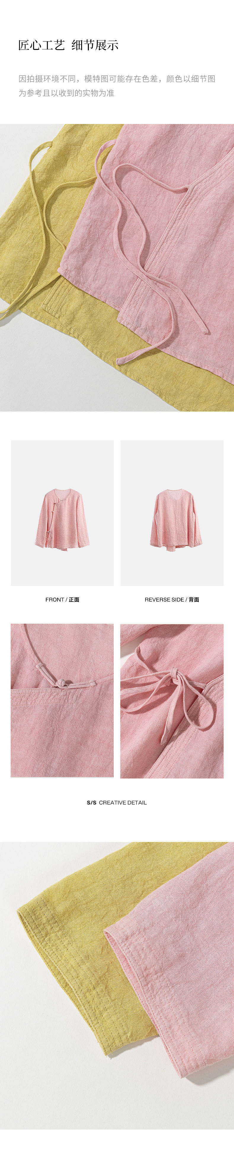 绽放女装514朵/墨染工艺亚麻新中式斜襟正常肩简约长袖衬衫女秋季