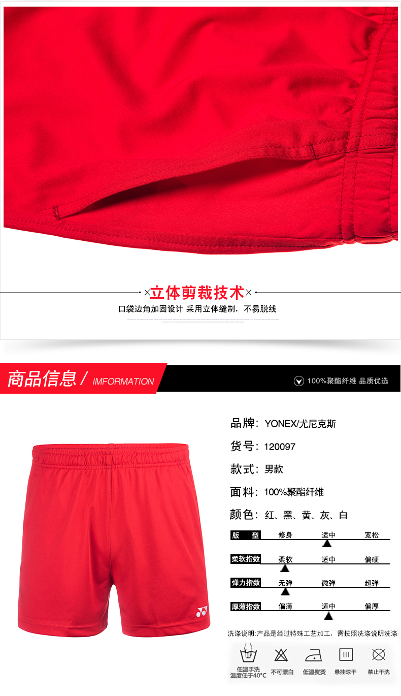尤尼克斯 羽毛球服 男款运动短裤 120097